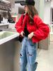 Cardigan Vermelho da Moda Estilo Hip-Hop de Celebridade da Internet Conjunto de Duas Peças para Mulheres Novo Terno Solto e Emagrecedor de Primavera e Verão