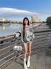 Suéter feminino estilo americano com estampa de letras, estilo hot girl, cinza, com design de início de outono, solto, casual, grande, ombro, top