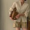 2024 Verão Simples All-match Novo Cardigan de Duas Peças Cor Sólida Moda Top Solto Cintura Alta Shorts Terno