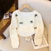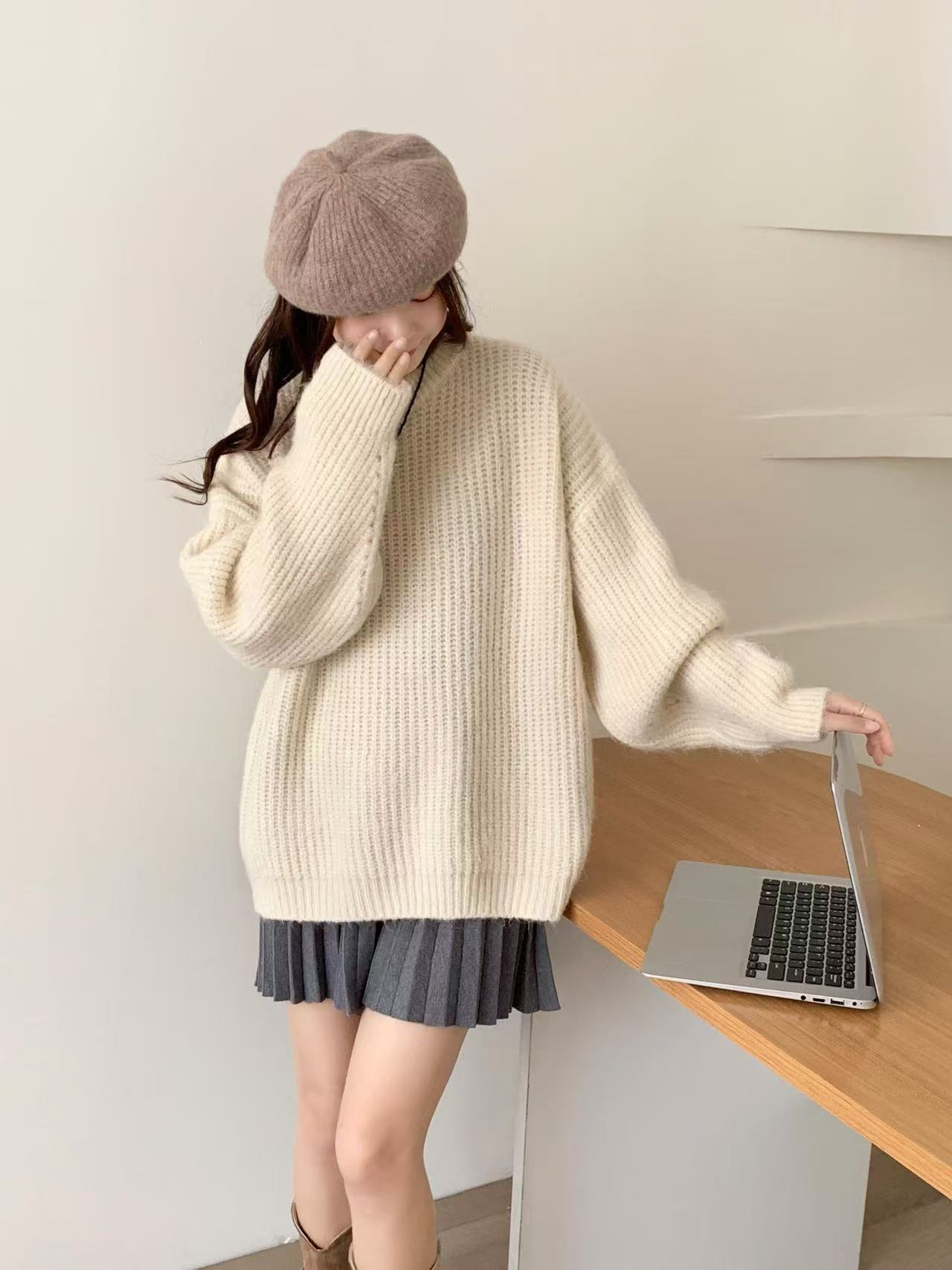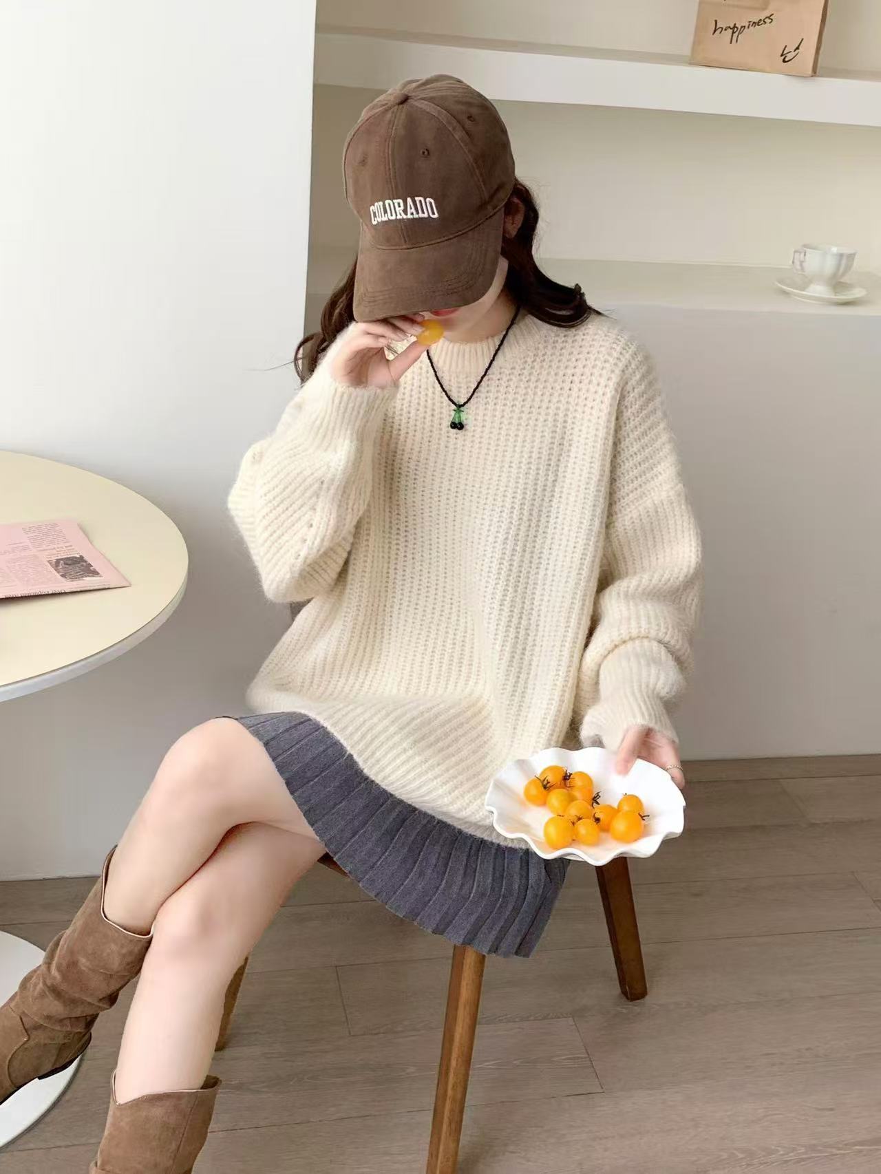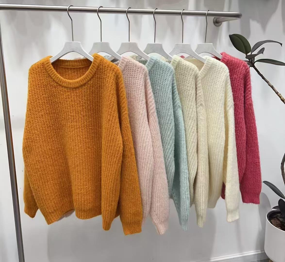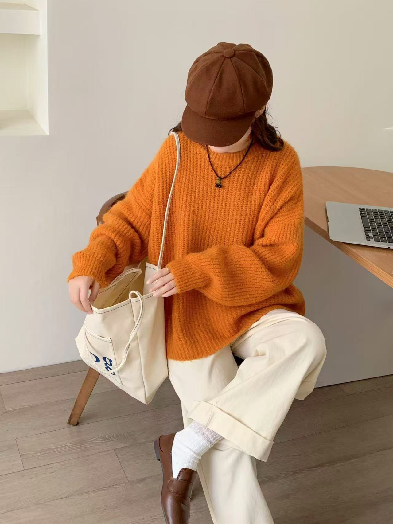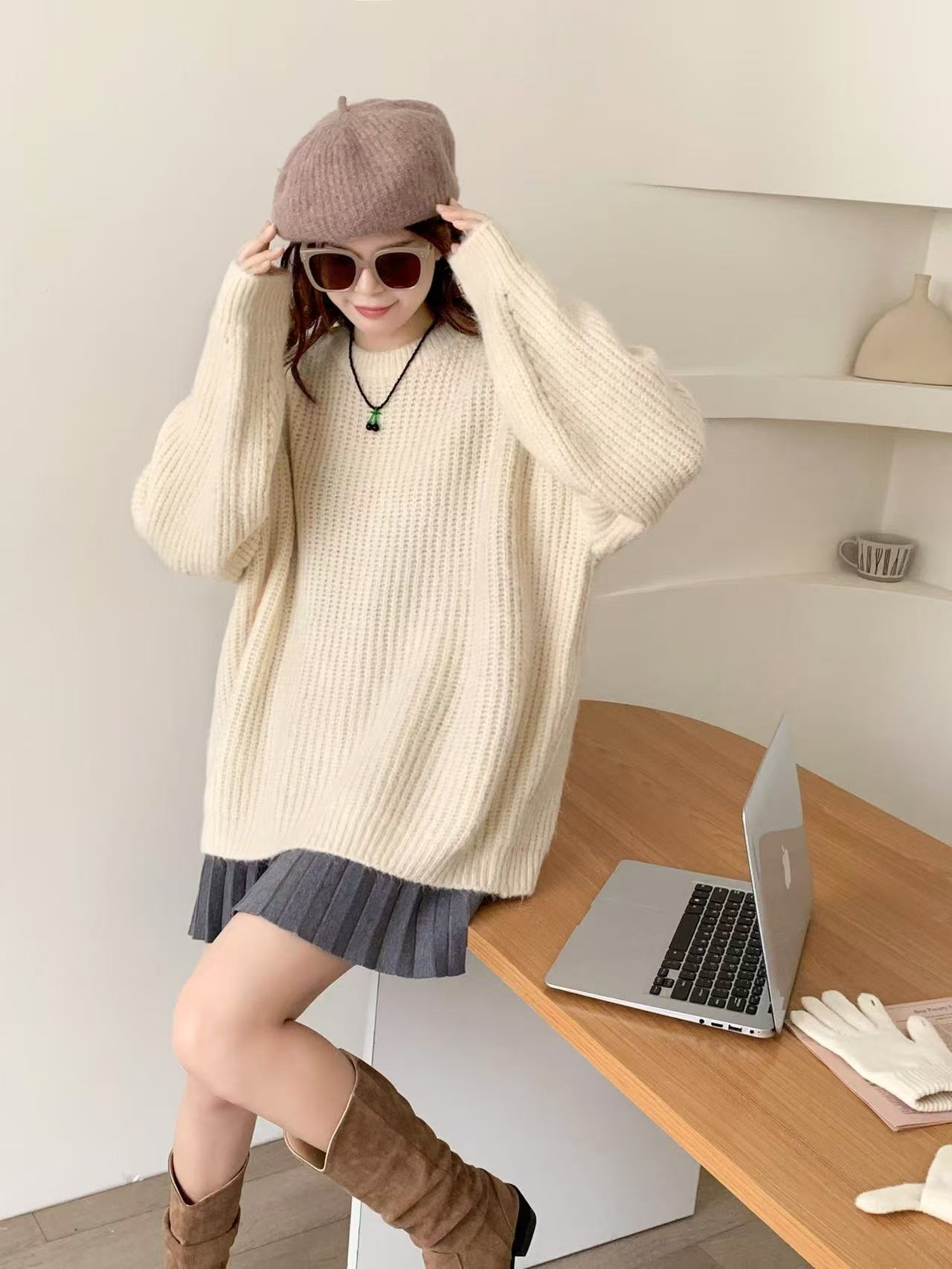 2024 Outono e Inverno Novo Estilo Preguiçoso Ceroso Macio Gola Redonda Pulôver Suéter Feminino Solto Doce Cor Doce Suéter Top