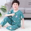 Pijama de algodão e seda infantil de verão, conjunto de calças de manga curta, pijama fino para meninos e meninas, roupas de casa de algodão e seda para bebês