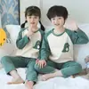 Compre Pijamas infantis de primavera e outono, 15 anos, algodão penteado, manga comprida, gola redonda, desenho animado coreano, roupa de casa para meninos e meninas no atacado no Joom.pro