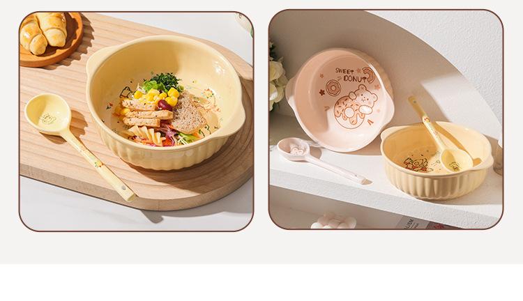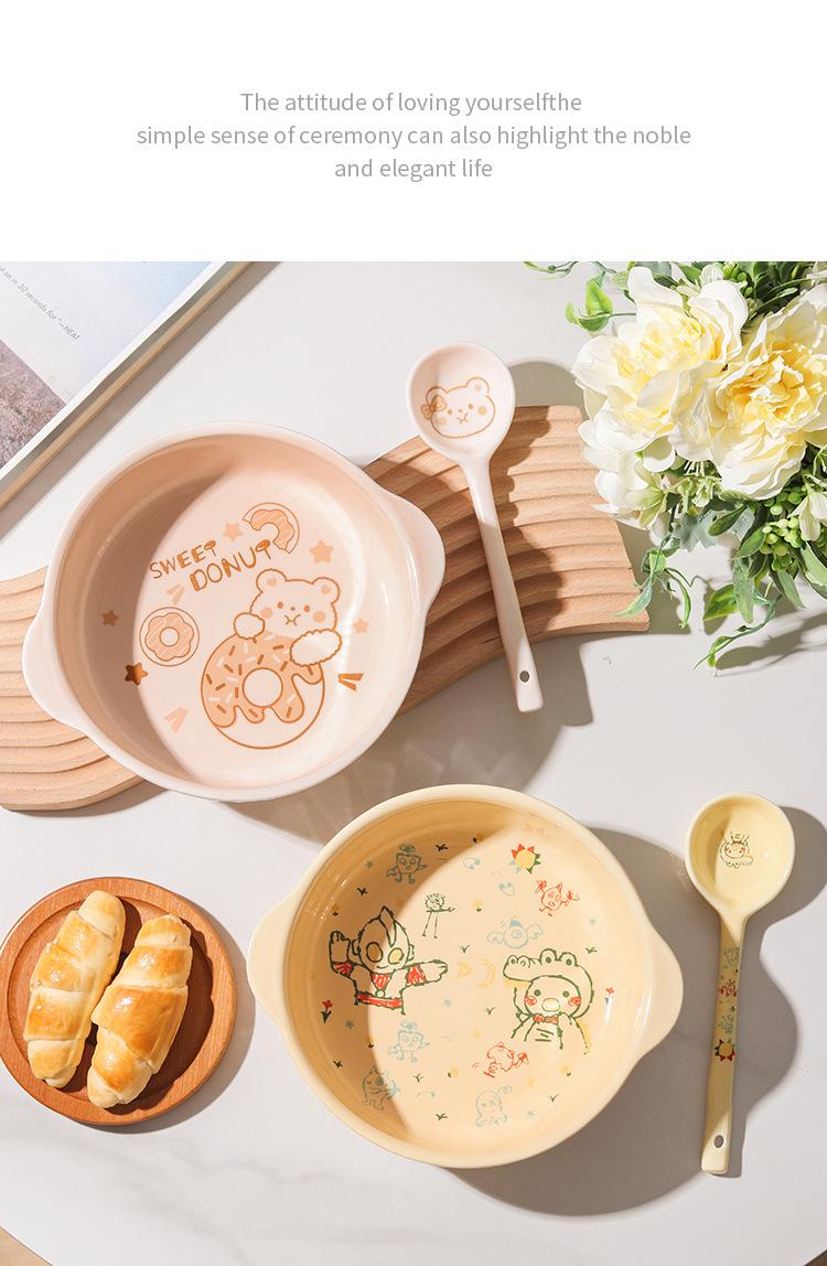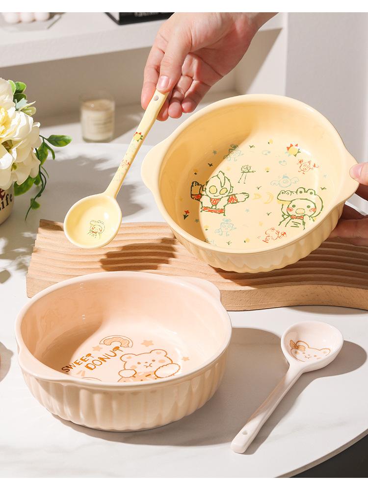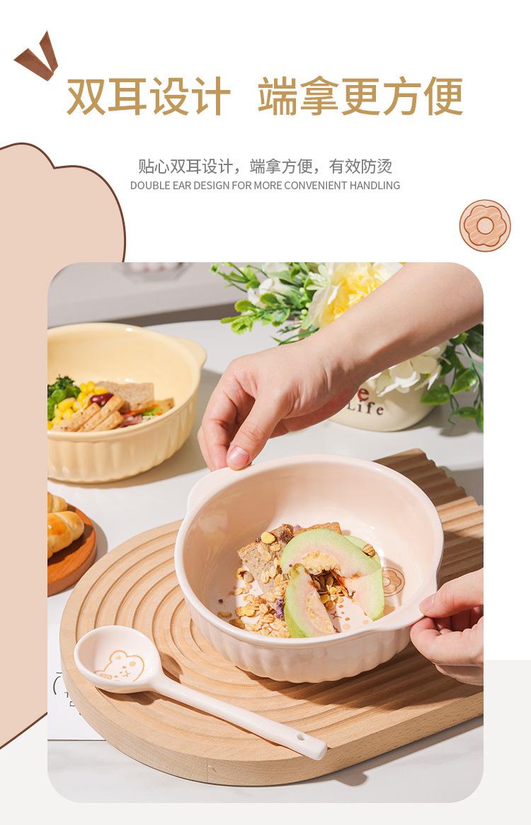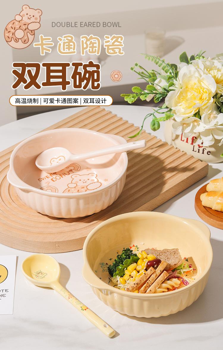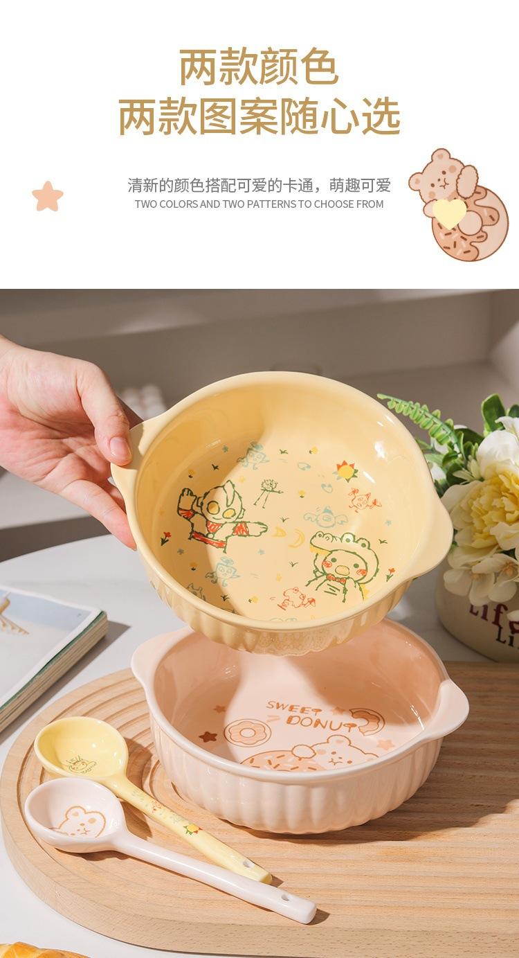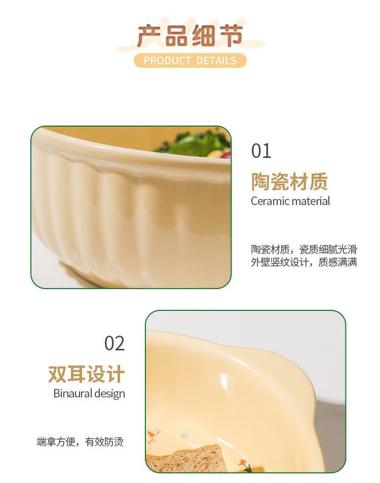 Tigela de cozimento de fritadeira de ar binaural amarela de leite, tigela de cerâmica para forno doméstico, tigela de macarrão, tigela de ovo cozido no vapor, tigela de arroz assado, tigela de salada, prato de cozimento