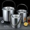 Balde de Gelo Comercial de Aço Inoxidável Balde de Gelo para Bar Camada Dupla com Alça Ktv Cerveja Vinho Tinto Gelo Balde de Champagne