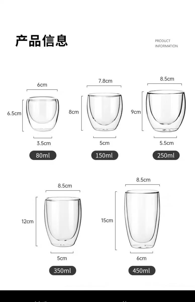 Compre Borossilicato de vidro resistente ao calor copo de café de escritório isolado transparente em forma de ovo copo de suco de suco de vidro engrossado de camada dupla no atacado no Joom.pro