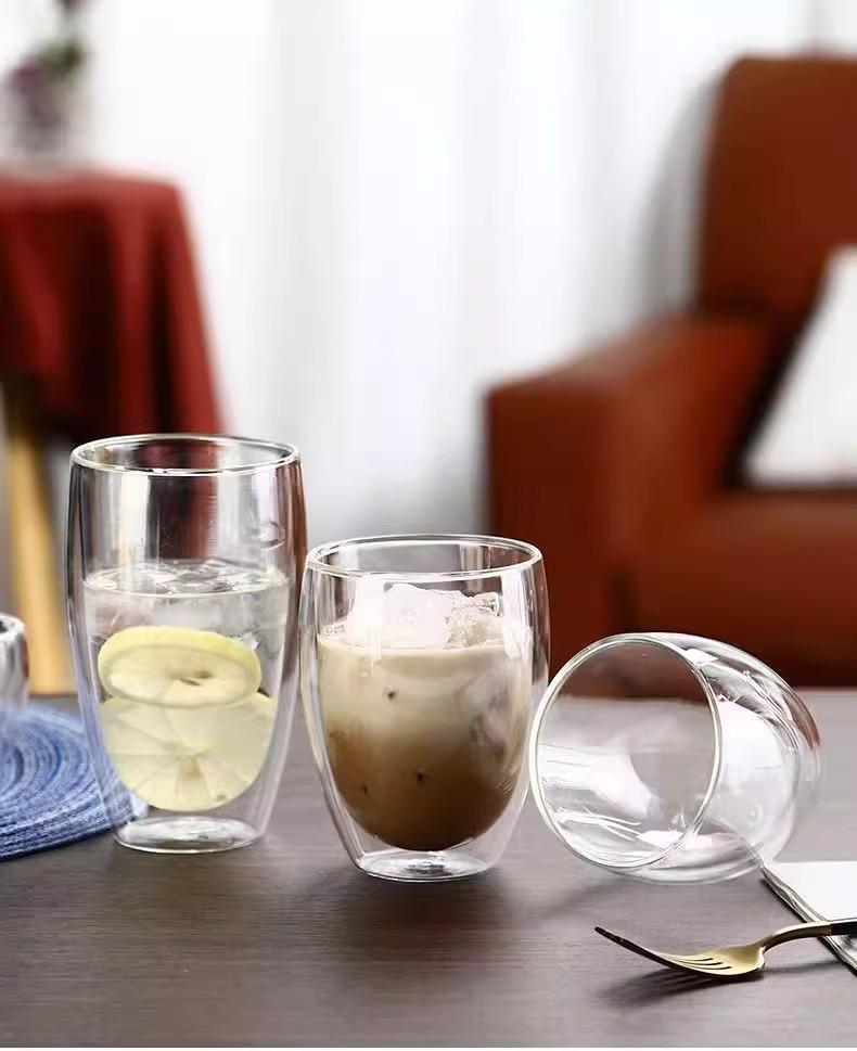 Borossilicato de vidro resistente ao calor copo de café de escritório isolado transparente em forma de ovo copo de suco de suco de vidro engrossado de camada dupla