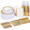 Compre Conjunto de 70 Peças de Pratos de Jantar Descartáveis, Pratos com Borda Dourada, Taças de Vinho, Talheres, Colheres, Papel Livre de Poeira, Pratos Vazados com Fundo Preto, Plástico Rígido PS no atacado no Joom.pro