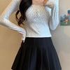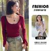 Pure Desire 2023 Hot Girl Sexy Gola Quadrada Manga Longa Bottoming Top Cintura Plissada Slim Cor Sólida Camiseta Top