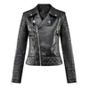 Jaqueta Curta Atacado de Roupas Europeias e Americanas de Primavera Jaqueta Slim com Lapela Branca para Trabalho em Couro PU