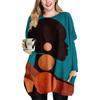 Camiseta de bolso longo de primavera e outono europeia e americana transfronteiriça plus size elemento facial feminino vestido de gola redonda geração cabelo