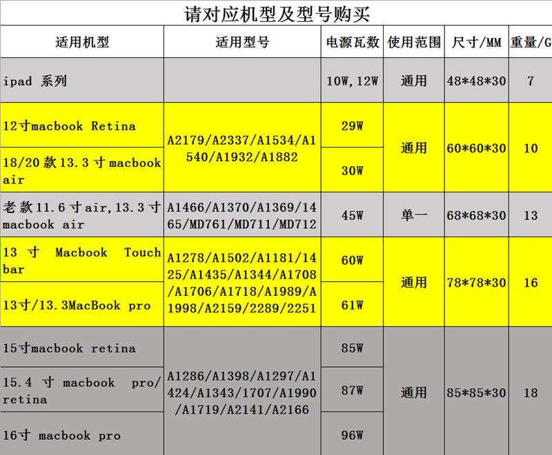 Consulte a tabela detalhada para determinar o modelo para evitar pedidos errados
