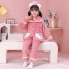 Pijamas de Lã Coral Infantil para Outono e Inverno, Plush de Manga Comprida com Desenho Animado e Gola Redonda para Meninas e Crianças Maiores