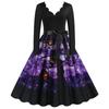 Real Shot Spot 20,21 milhões Holy Festival Novo Vestido de manga comprida com estampa de abóbora, decote em V, flor queimada e grande balanço com fita