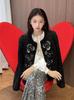Outono e Inverno Estilo Chinês High-End Lantejoulas Pretas Brilhantes Bordado Manga Longa Novo Estilo Chinês Casaco Solto para Mulheres My010