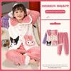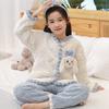 Pijama infantil de lã coral para meninas, outono e inverno, flanela espessada, roupa para casa, tamanho 8 a 18, 280g, pelúcia