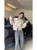 Europeu e americano 2023 outono nova cintura curta jaqueta justa casaco fino ins street shot solto workwear top