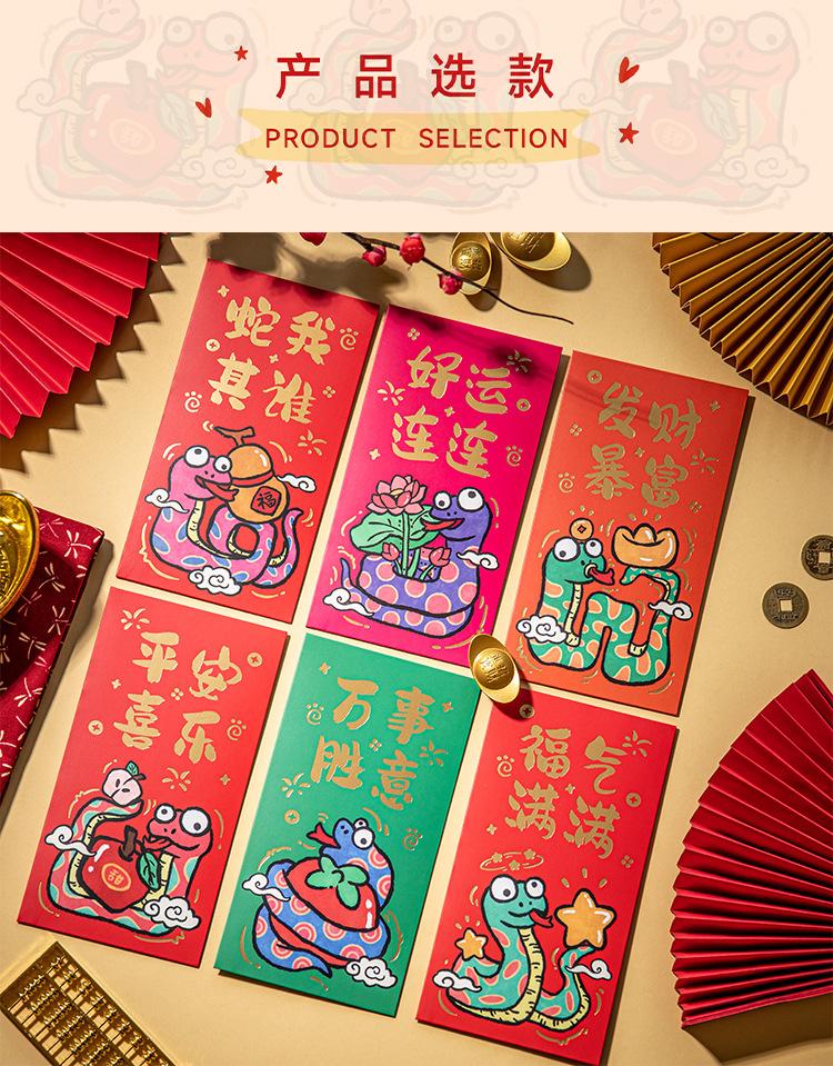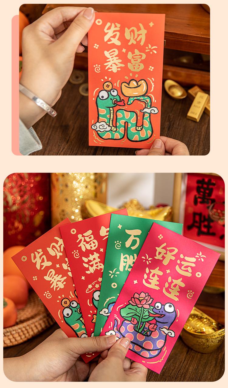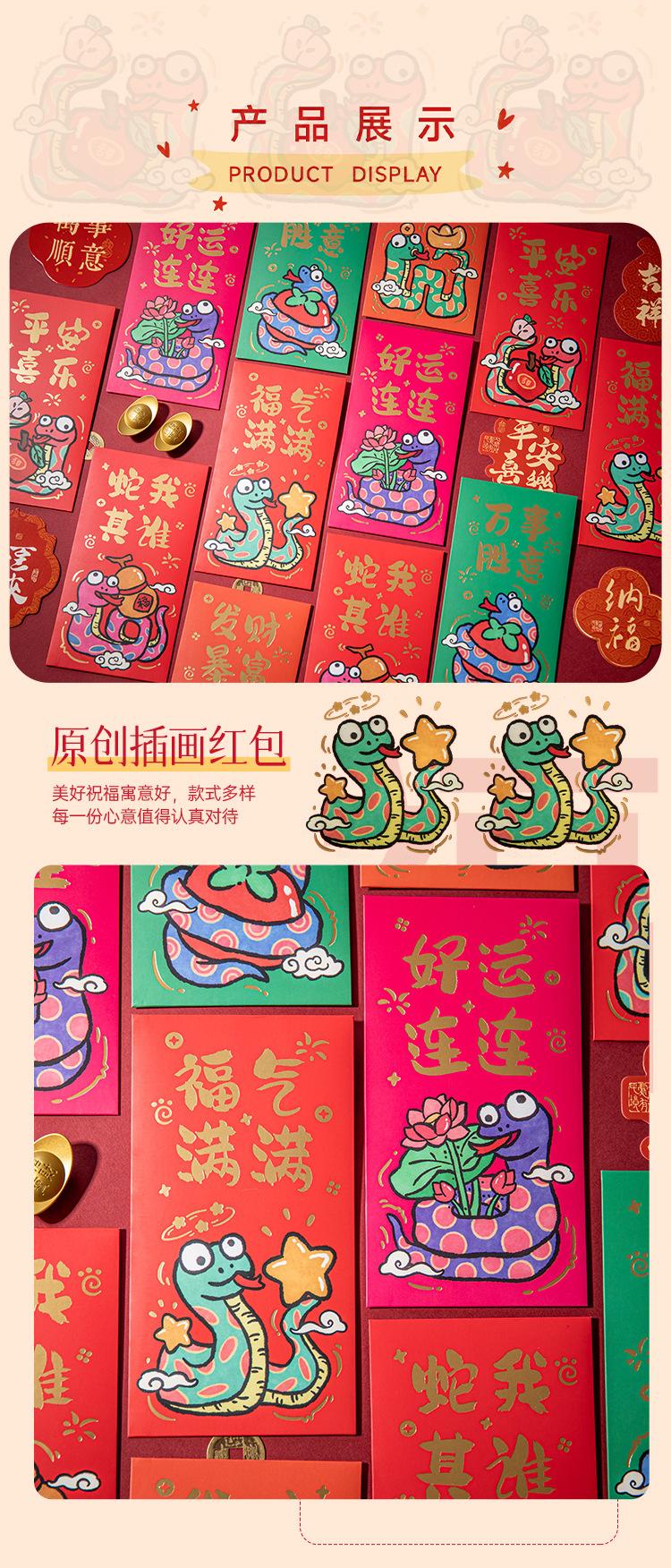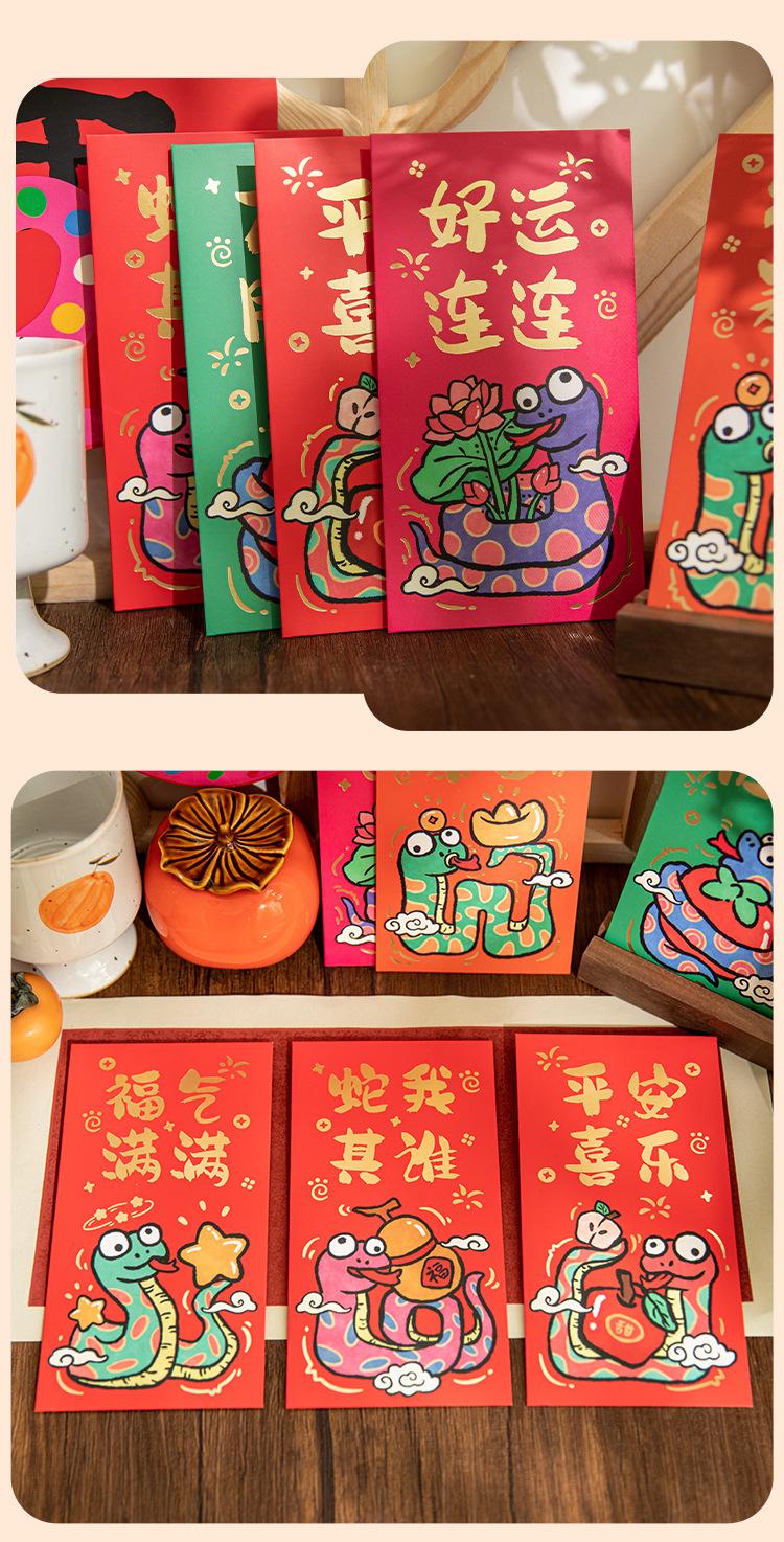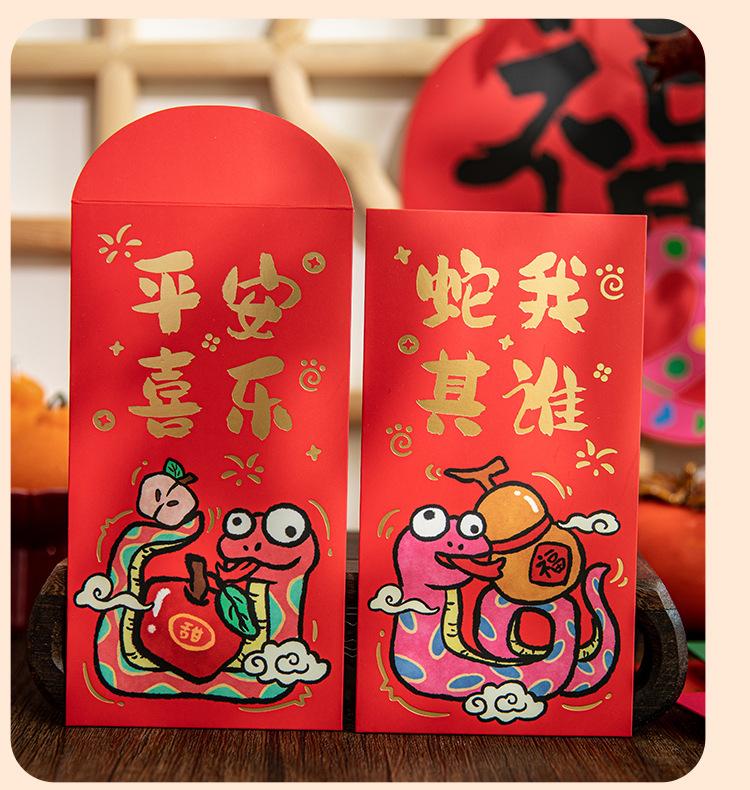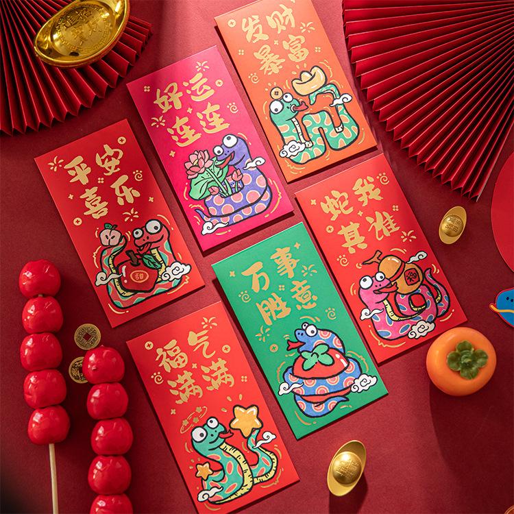 Snake A New Year Red Envelope Criativo Pintado à Mão Infantil Diversão Bonito Personalidade Sacola de Ano Novo Festival da Primavera 2025 Novo