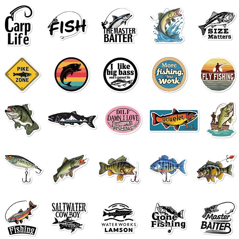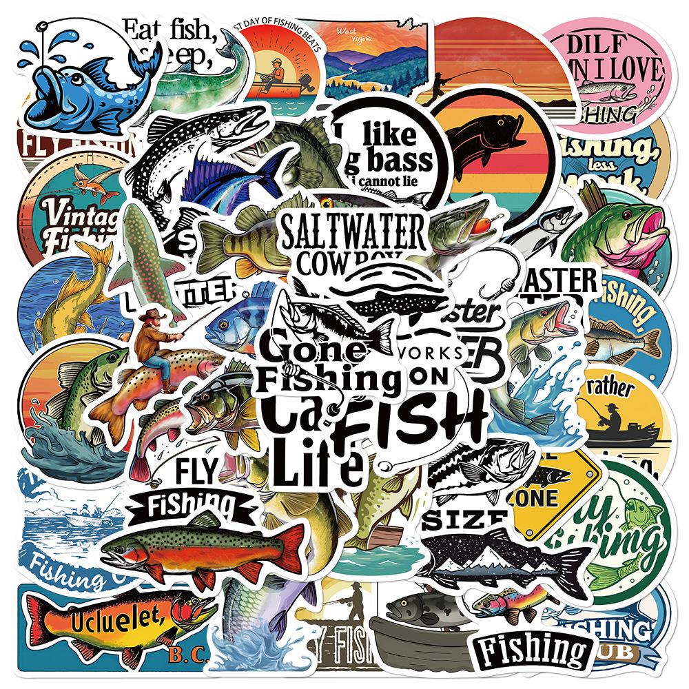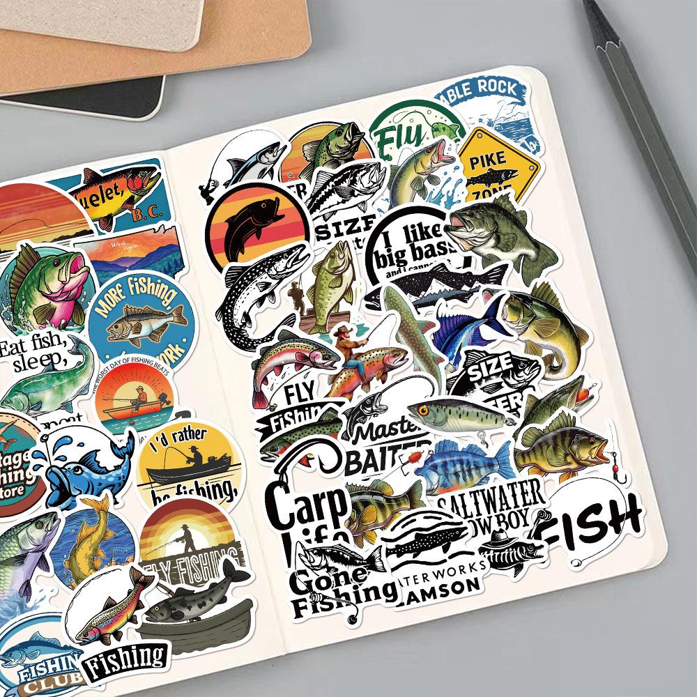 50 adesivos de desenho animado de peixe, decoração de animais fofos, caixa de armazenamento, adesivos para caderno de bagagem