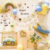 Suprimentos de layout de cena de festa de balão de aniversário para meninos e meninas, desenho animado de aniversário, filme de alumínio, decoração de parede