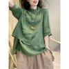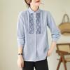 Outono Commuter Estilo Étnico Bordado Design Sense Niche Botão Slim Listrado Camisa Feminina Manga Longa