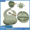 Babador de silicone infantil, prato de jantar de silicone, conjunto de cinco peças, comida para bebê, treinamento suplementar, prato de sucção, tigela, conjunto de talheres