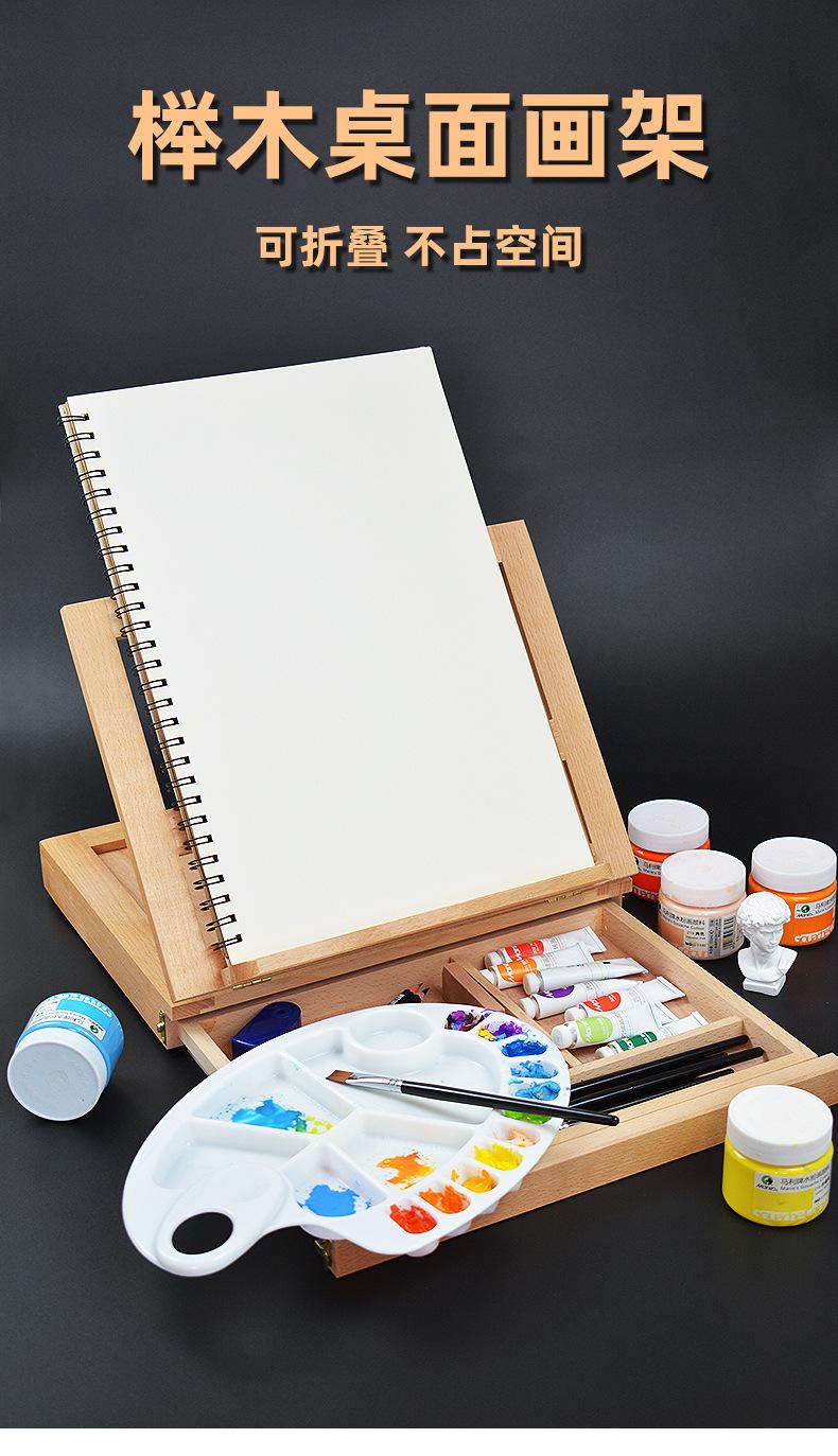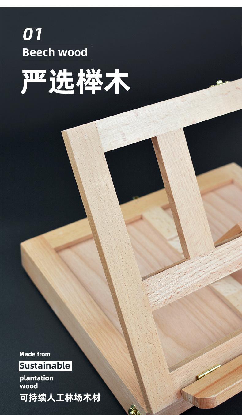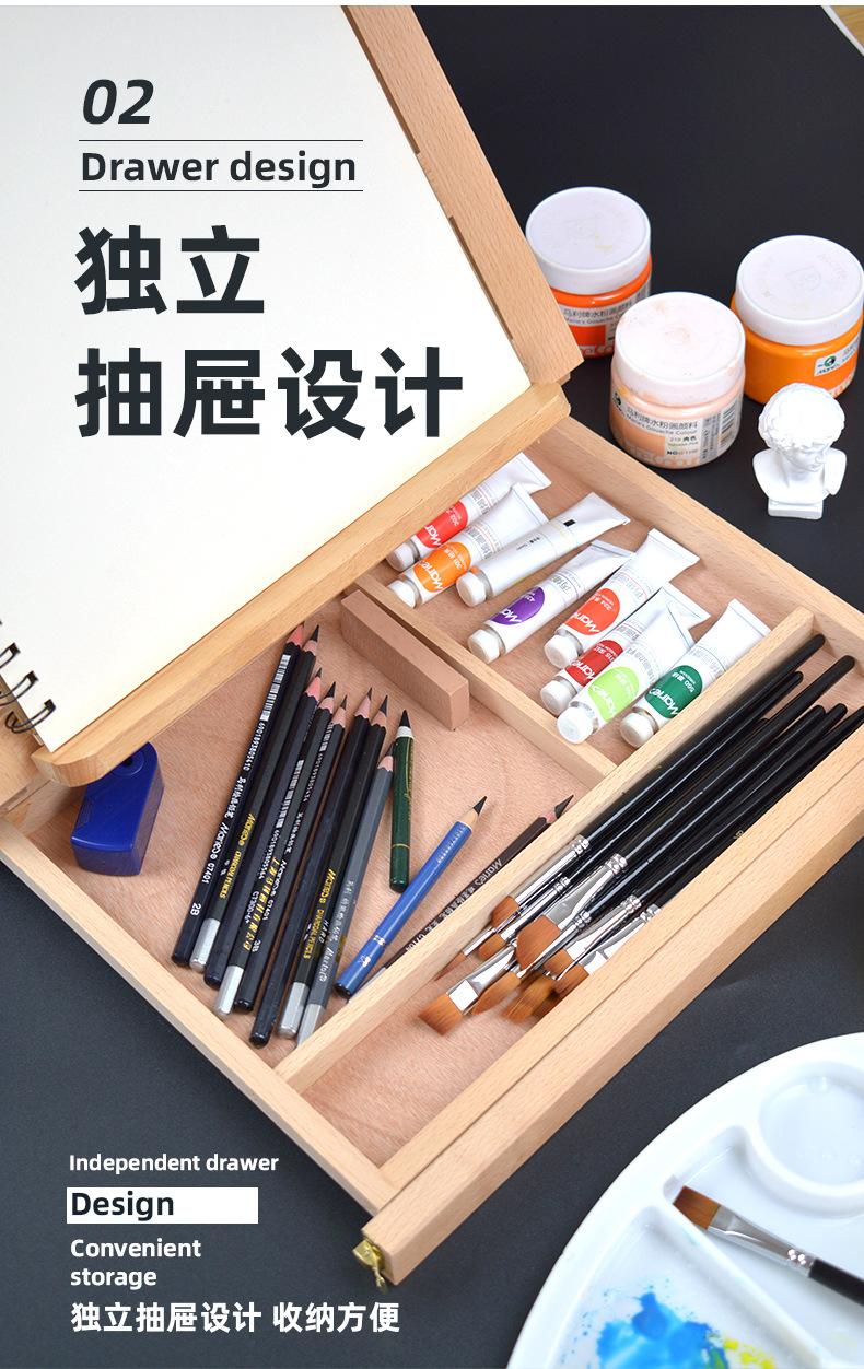 Caixa de pintura de arte portátil tipo gaveta de camada única de faia, cavalete de madeira para esboço, cavalete de óleo, cavalete para esboço, caixa de cavalete