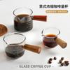 Jarra de Leite de Vidro Ins Estilo Japonês com Alça de Madeira e Escala, Pequena Xícara de Leite para Espresso Latte, Pequena Xícara Medidora, Pequena Jarra de Leite, Recipiente para Leite