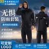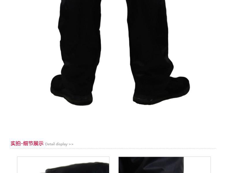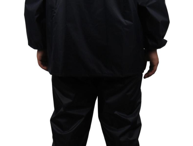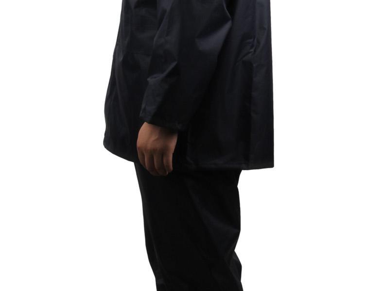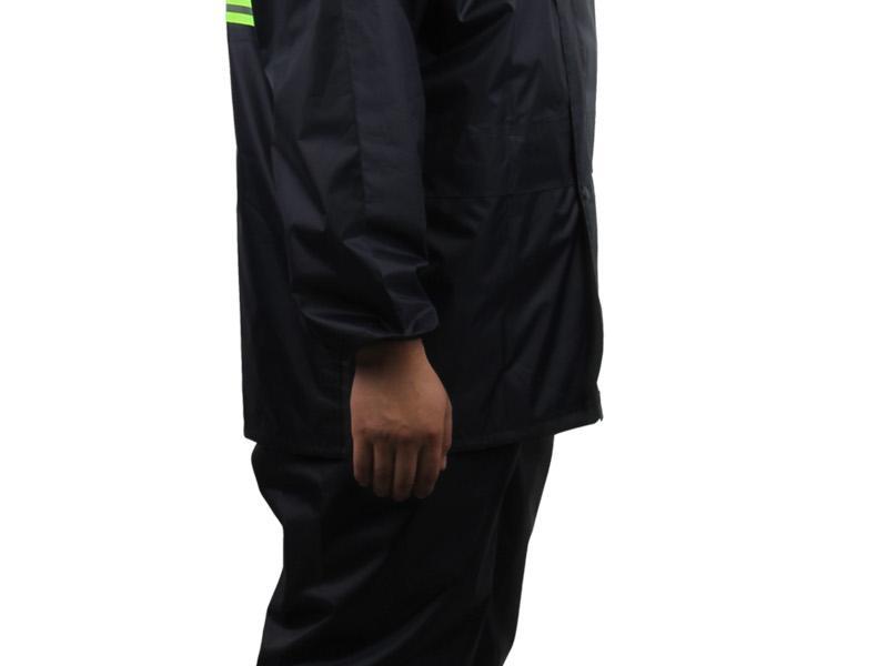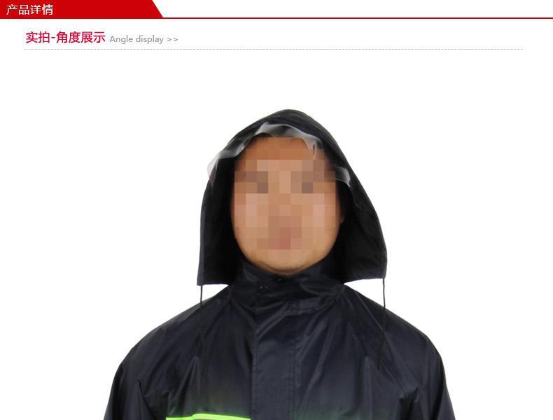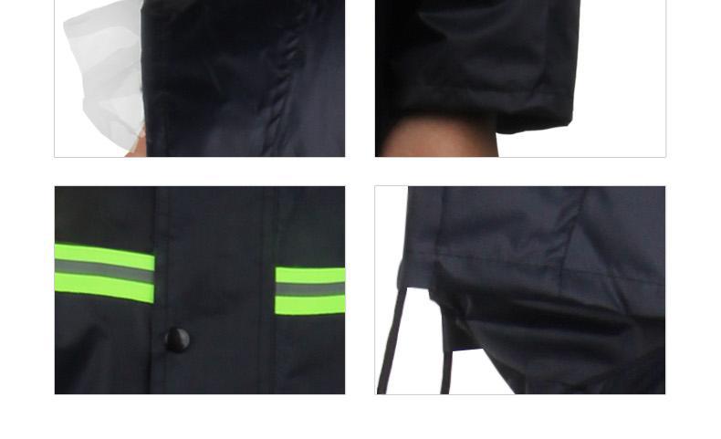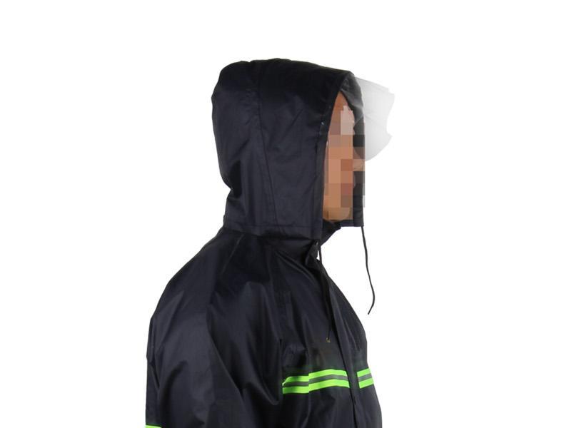 • É um terno de capa de chuva de camada dupla dividida, incluindo um top e calças. O top é um estilo casual de frente dupla, design de camada dupla, com forro, cós elástico e aba transparente impermeável estendida.