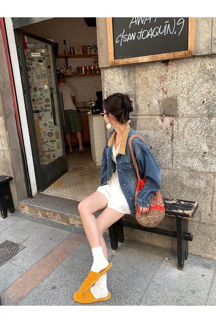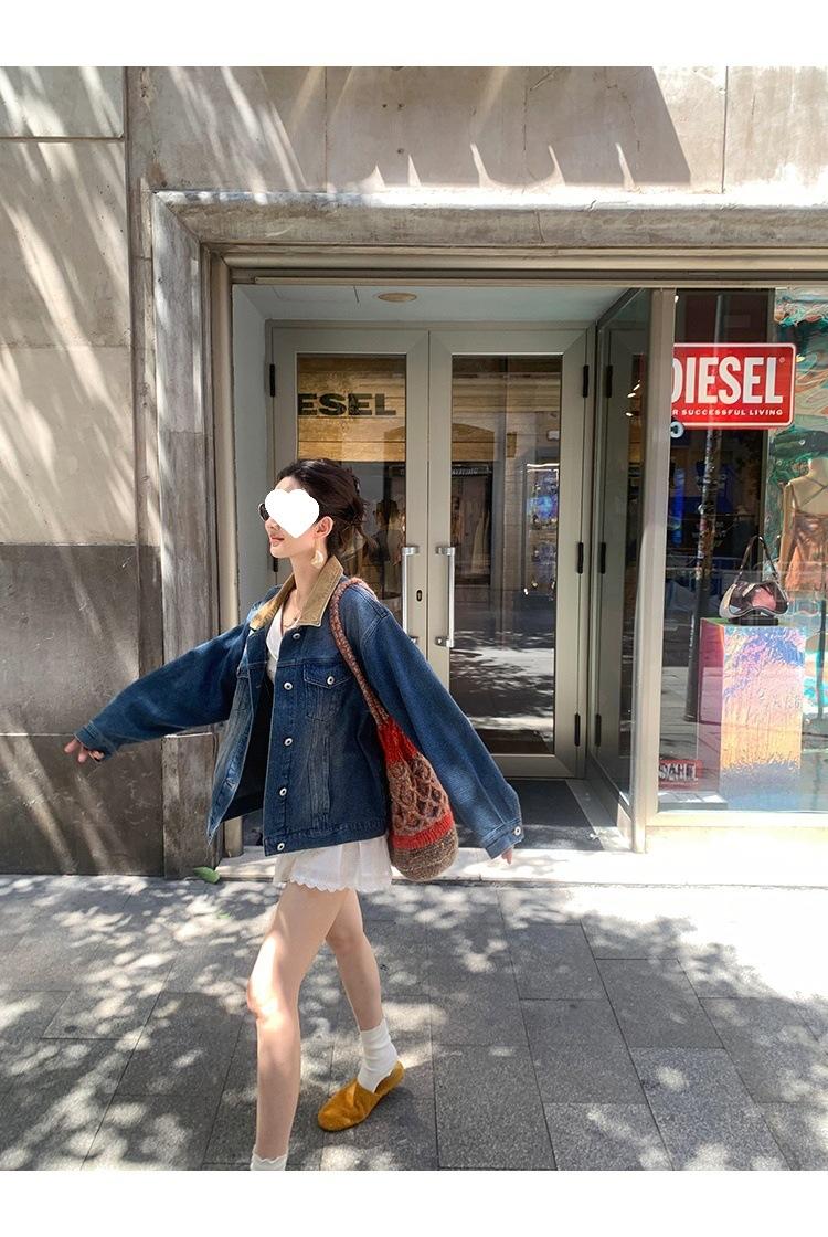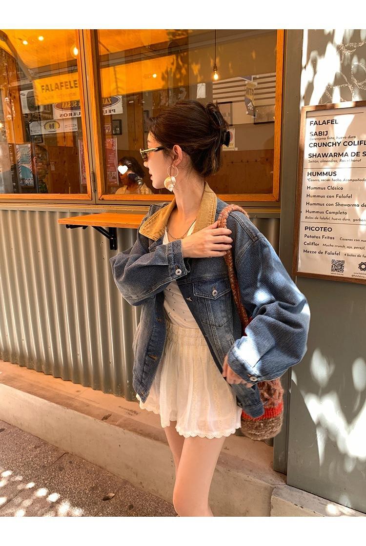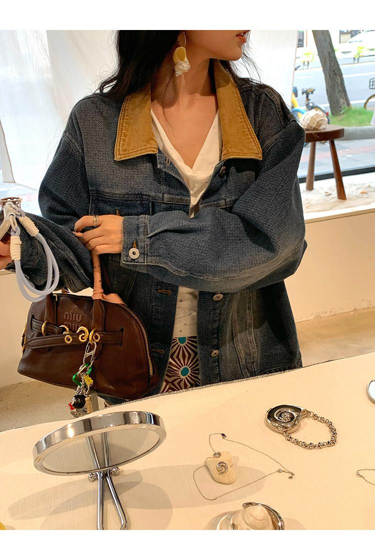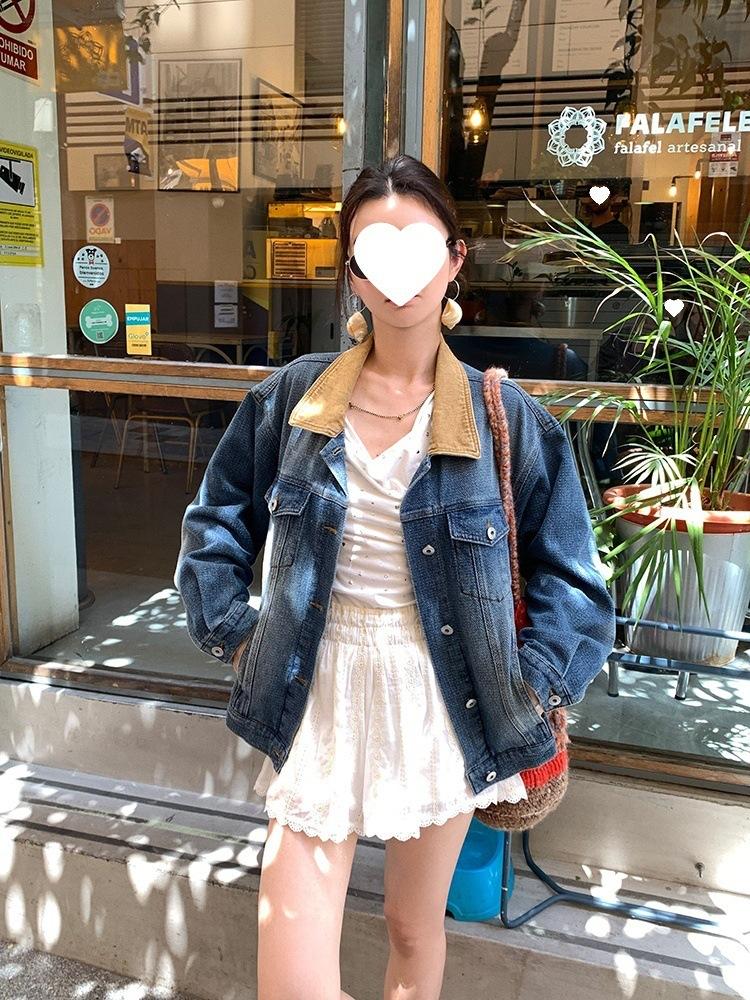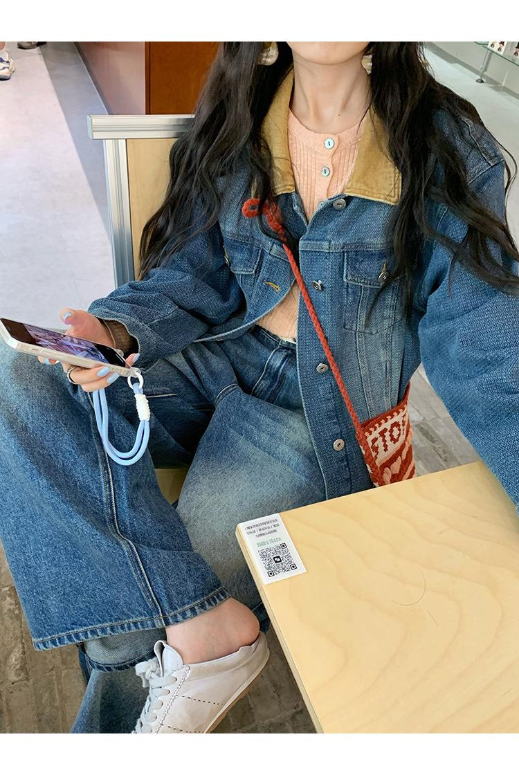 Combinei o design da jaqueta jeans clássica com o estilo de uma jaqueta de trabalho.