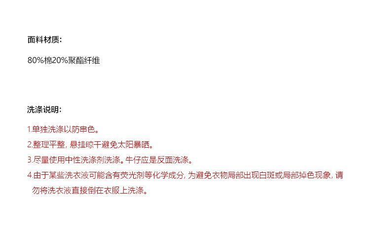 Dicas: 1. As roupas podem ser lavadas à mão ou à máquina normalmente. Sejam cores contrastantes ou cores únicas, elas não podem ser deixadas de molho por muito tempo. Lave enquanto estiver de molho para evitar manchas ou desbotamento; [Instruções de lavagem/método de secagem: Recomenda-se lavar à mão, lavar em água fria e lavar enquanto estiver de molho] Não use cores fortes! 2. Não escove, torça ou esfregue com força para evitar que o tecido forme bolinhas; 3. Tecidos de malha escovados e lã polar de cores escuras soltarão levemente pelos flutuantes ao serem lavados, o que é uma característica do tecido e não afeta o uso; 4. Tecidos de lã de alta qualidade e lã dupla face precisam ser manuseados por lavanderias a seco ao serem limpos. Não se recomenda lavar à mão ou à máquina para evitar encolhimento e deformação. Pendure para guardar, seque regularmente e preste atenção ao mofo e à prevenção de insetos; 5. Todas as partes removíveis devem ser lavadas separadamente para evitar manchas ou outros problemas