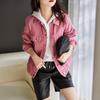 Gola é projetada com lapela de alfaiatariaAo mesmo tempo, adicionar elementos de costura em cores contrastantes adiciona destaques