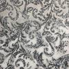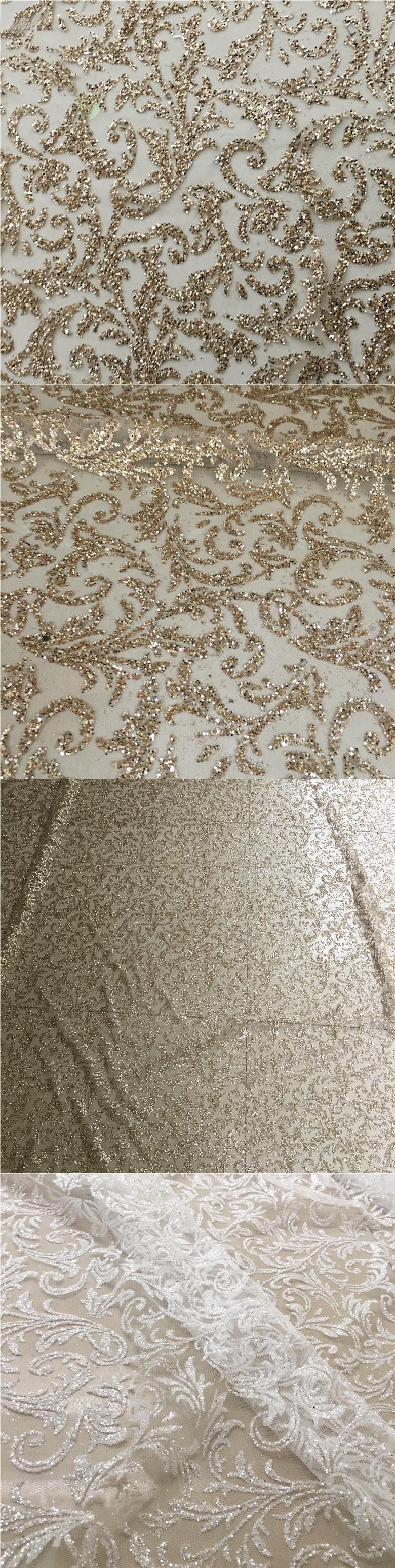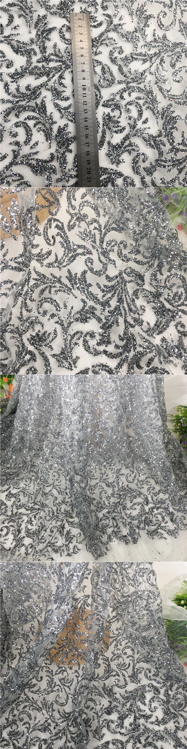 Vestido de tecido de lantejoulas bronzeadas com padrão cinza dourado e prata e branco transparente para performance em roupas de local de renda