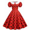 Real shot spot Amazon venda quente francês retro branco grande lapela bolinhas impresso grande vestido de balanço