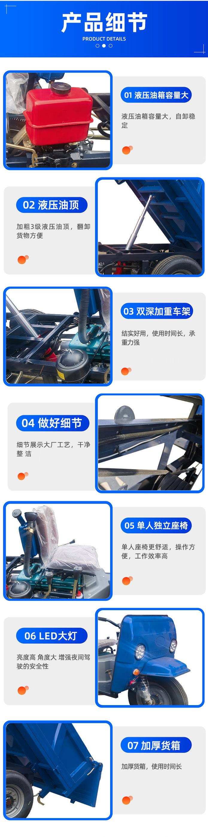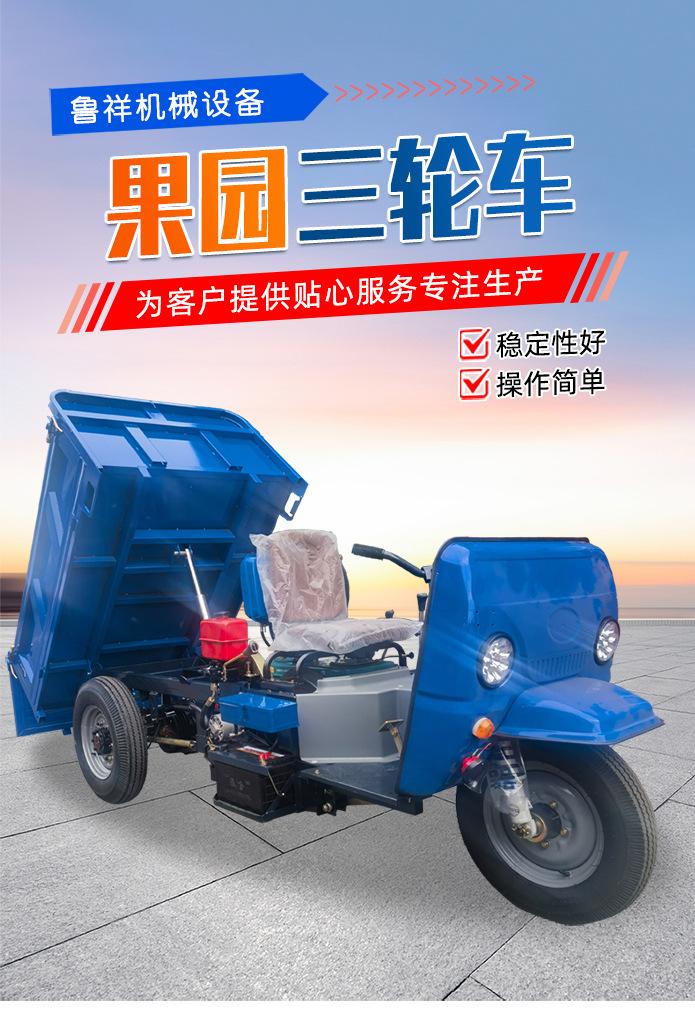 Projeto de triciclo a diesel agrícola, canteiro de obras autogirante, puxar mercadorias, triciclo de pomar a diesel de três portas, pequeno despejo