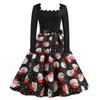 Foto real do vestido de manga comprida com estampa de Natal e patchwork de flores queimadas da Aliexpress, com balanço completo