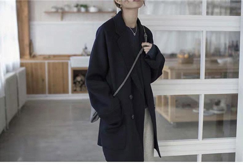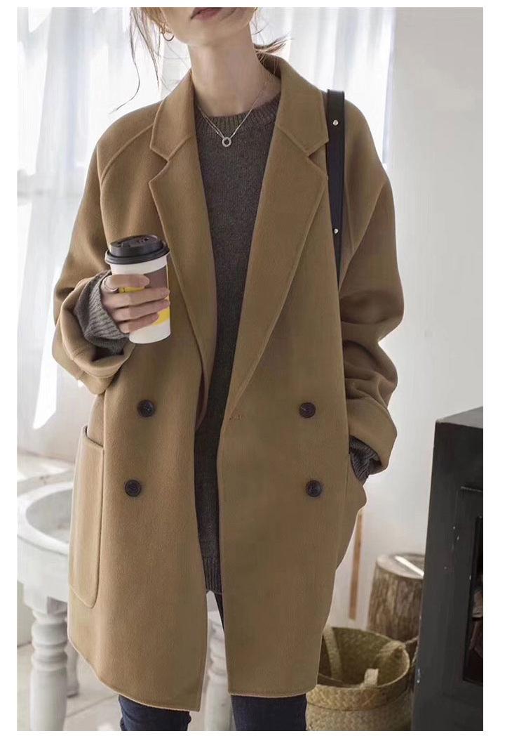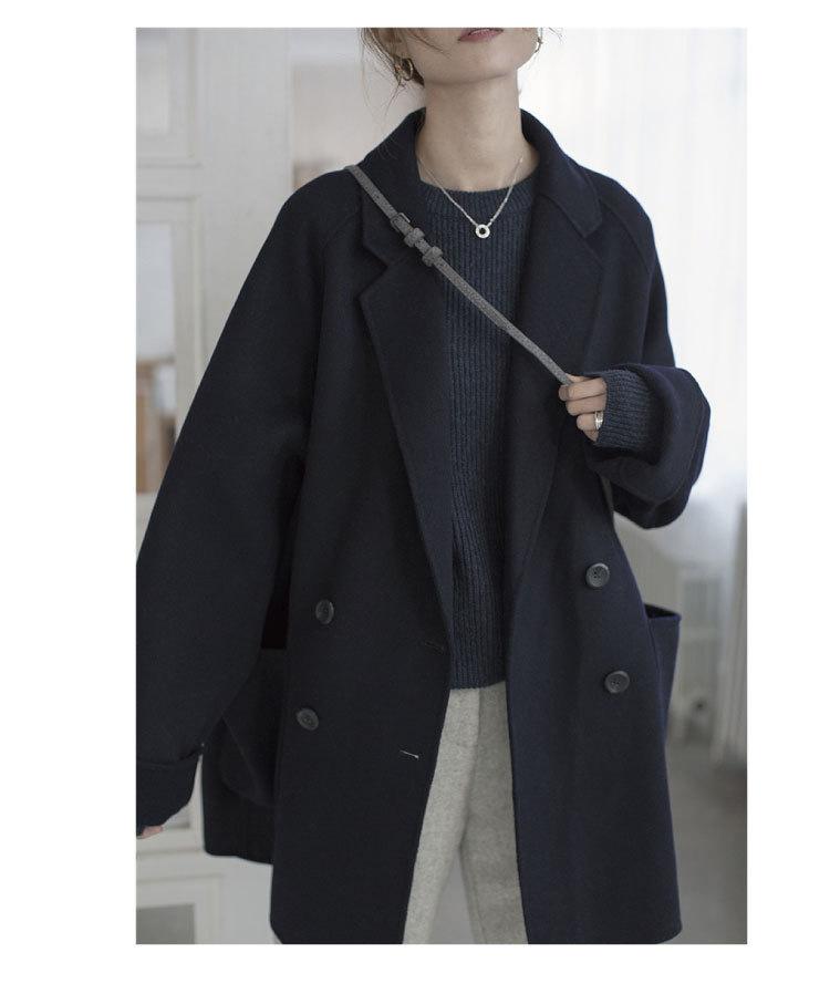 Estilo K de Casaco de Caxemira Pequeno de Lã Popular Reto Solto Novo Outono e Inverno 2025 para Mulheres