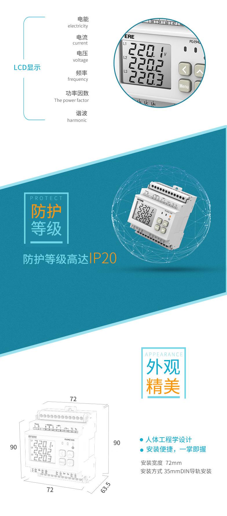 Jiangsu sifeir PD194Z-E20 instalação ferroviária terminal de monitoramento de eficiência energética inteligente medidor de energia multifuncional
