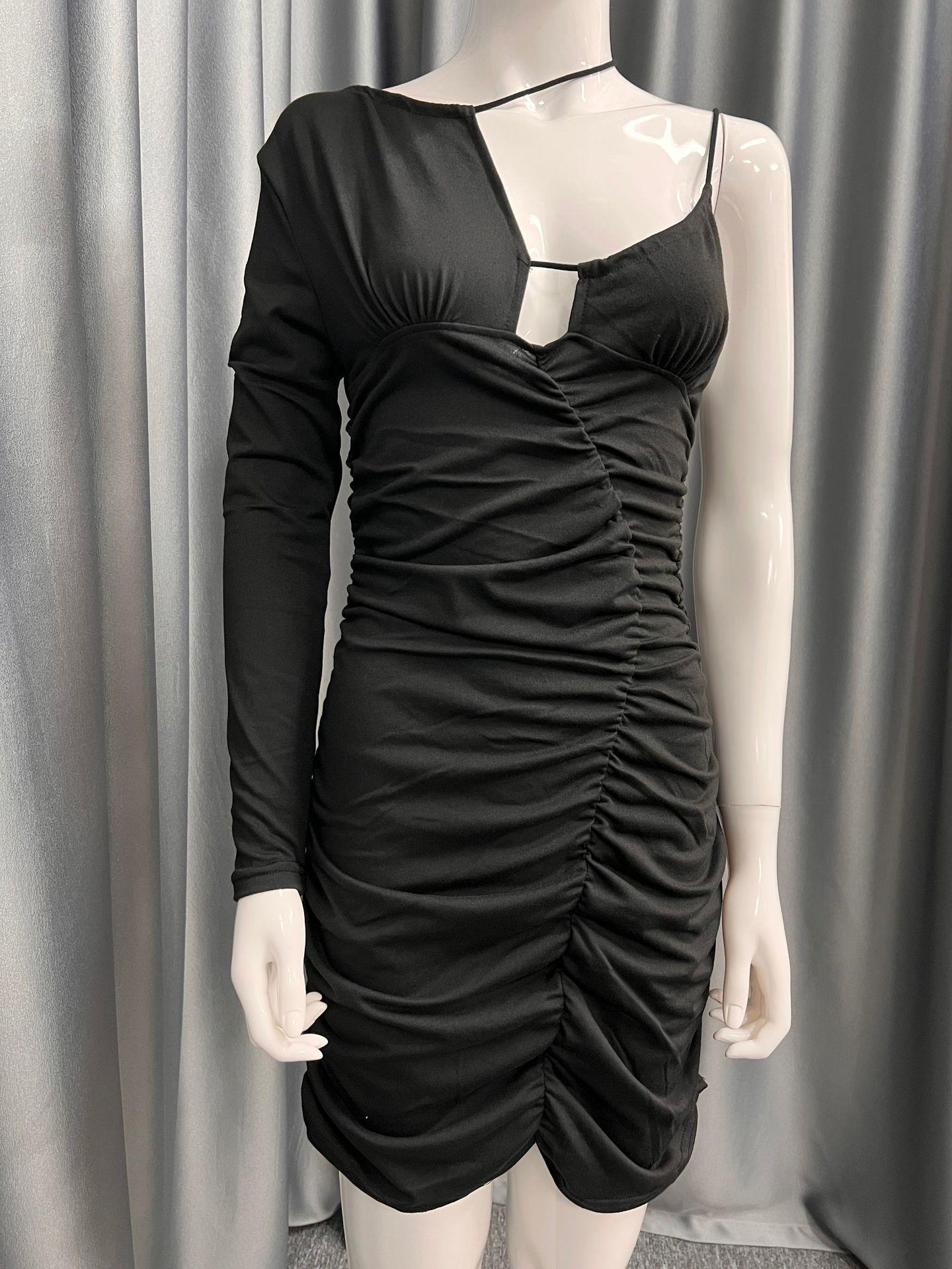2023 Europeu e americano verão novo comércio exterior desejo feminino sexy boate irregular ombro manga longa sling vestido
