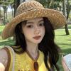 Chapéu de palha com laço feminino 2024 novo chapéu de pescador dobrável de crochê oco de praia com aba grande protetor solar