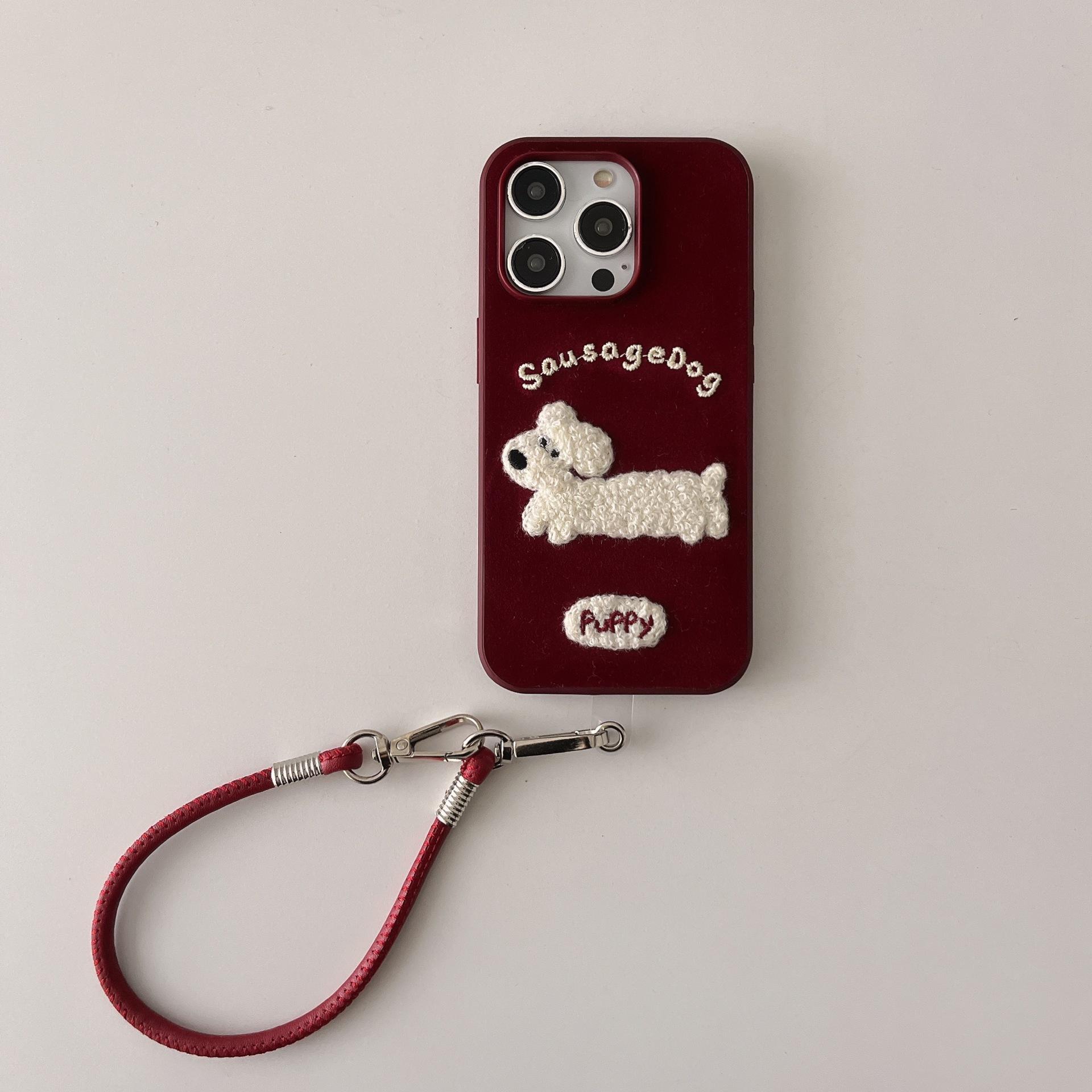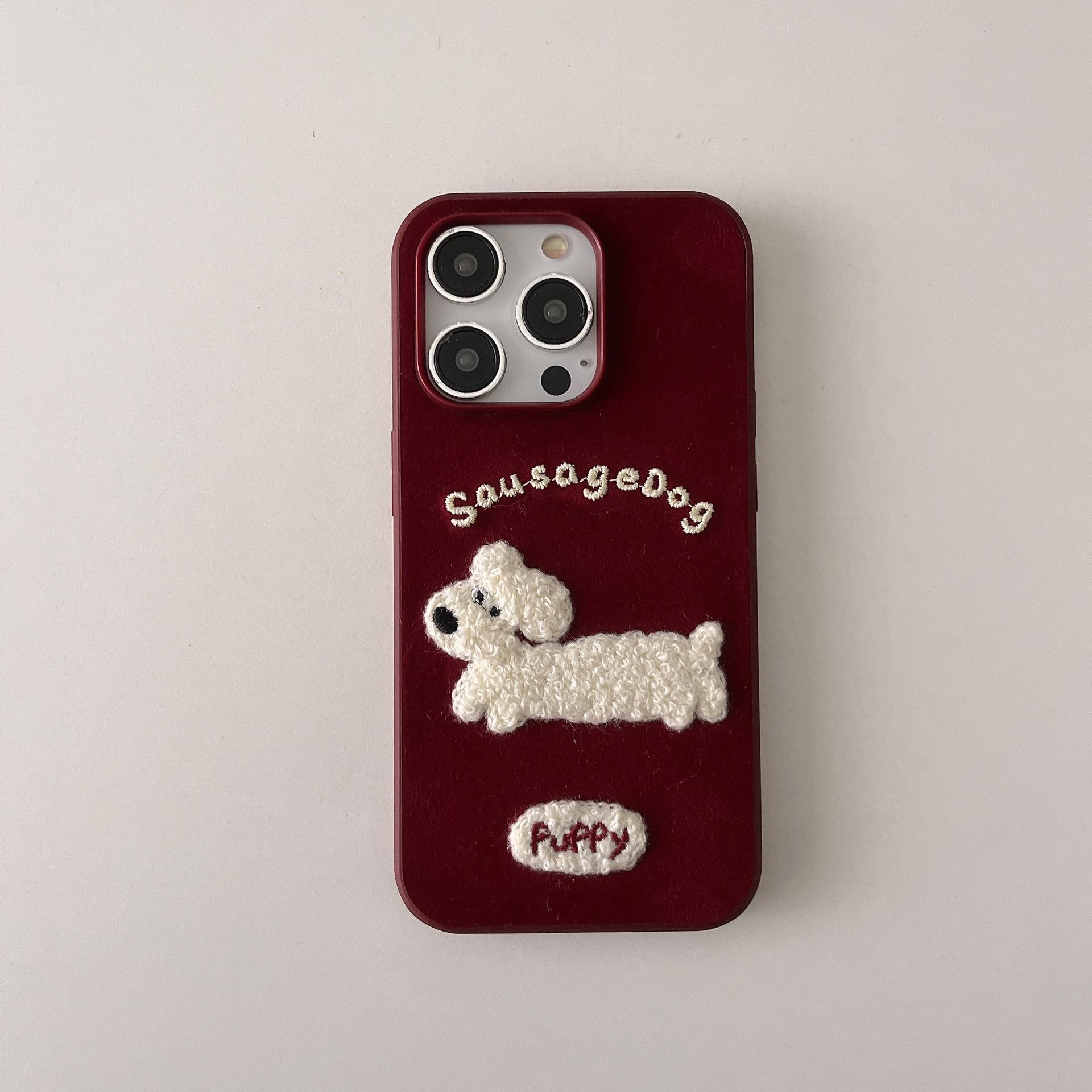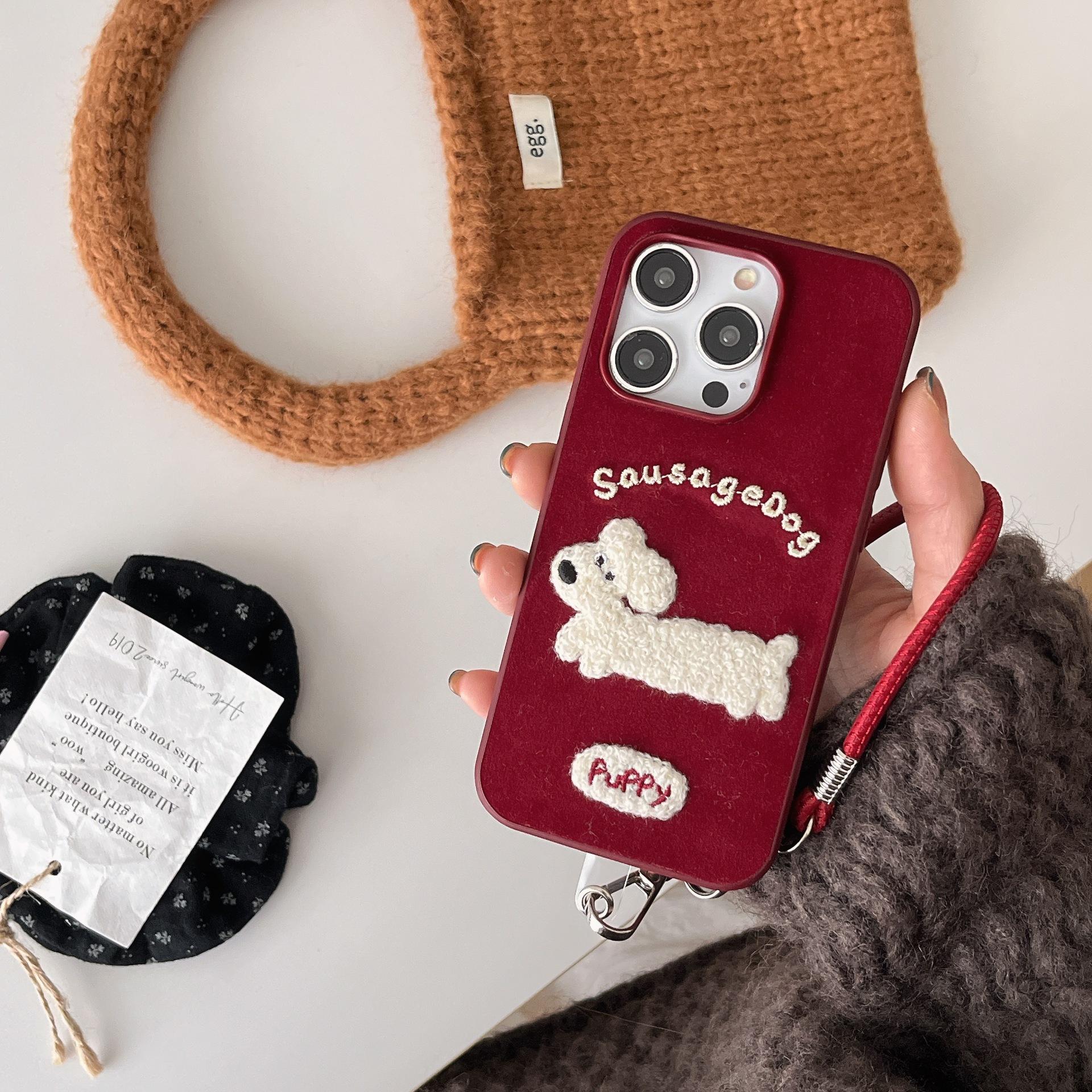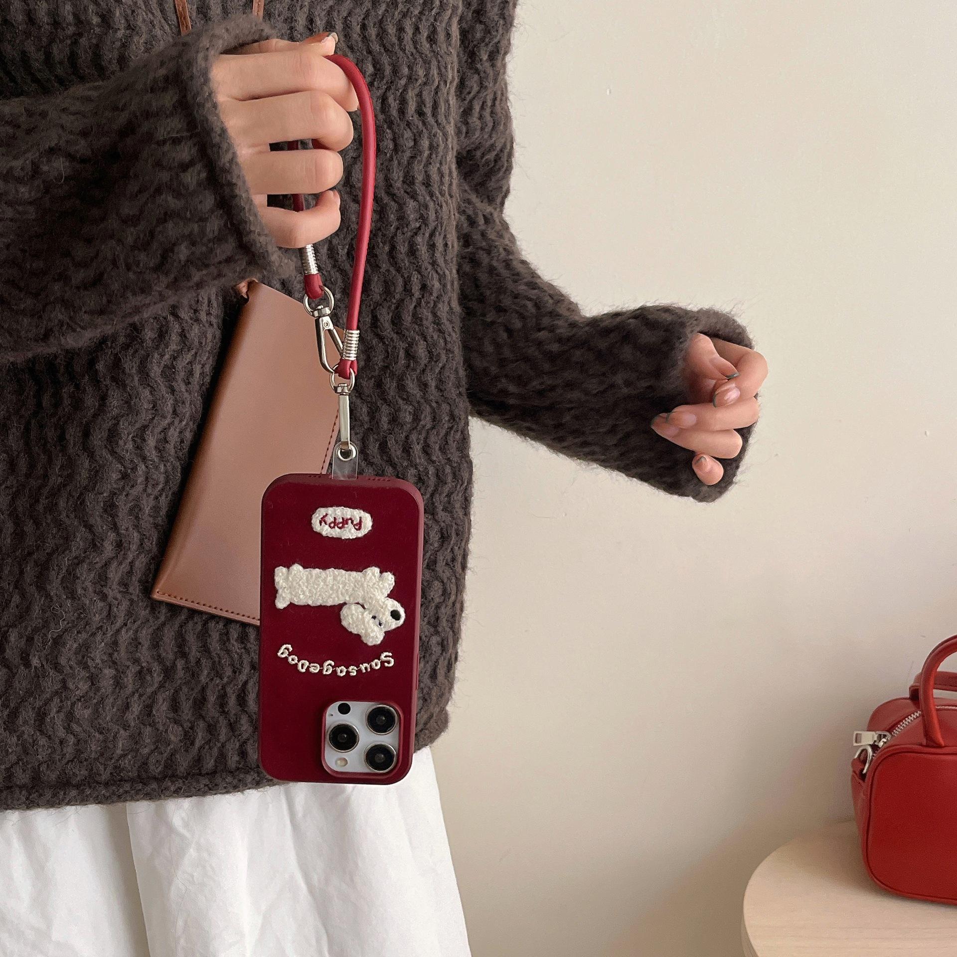 Filhote Bordado Fofo Adequado para Capa de Celular Apple 17Promax Iphone16 Vermelho Festivo 14 Portátil 15 Desenho Animado