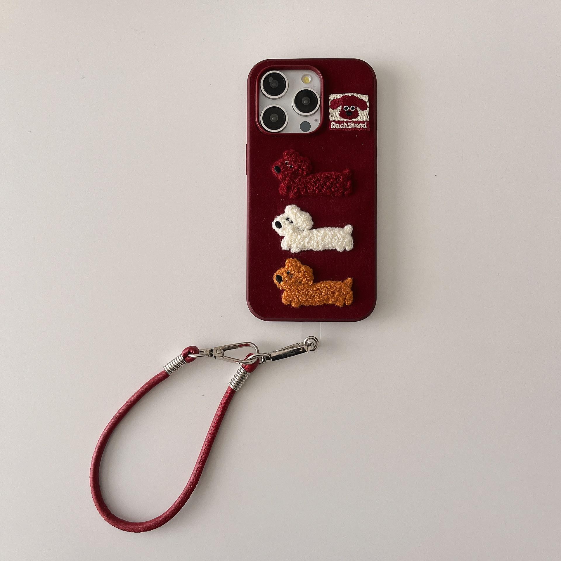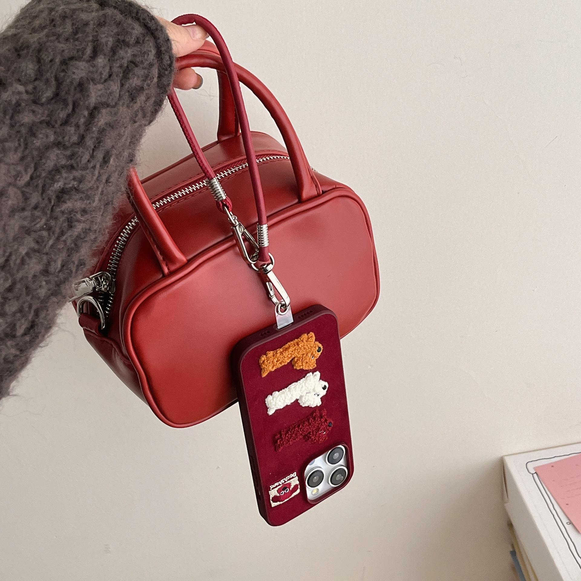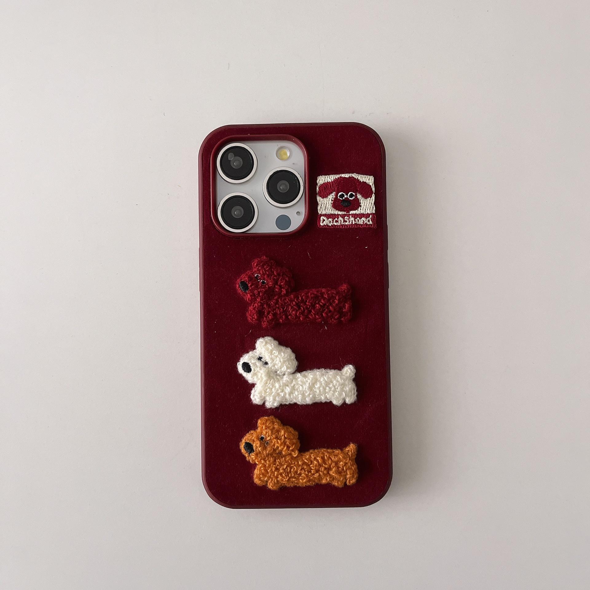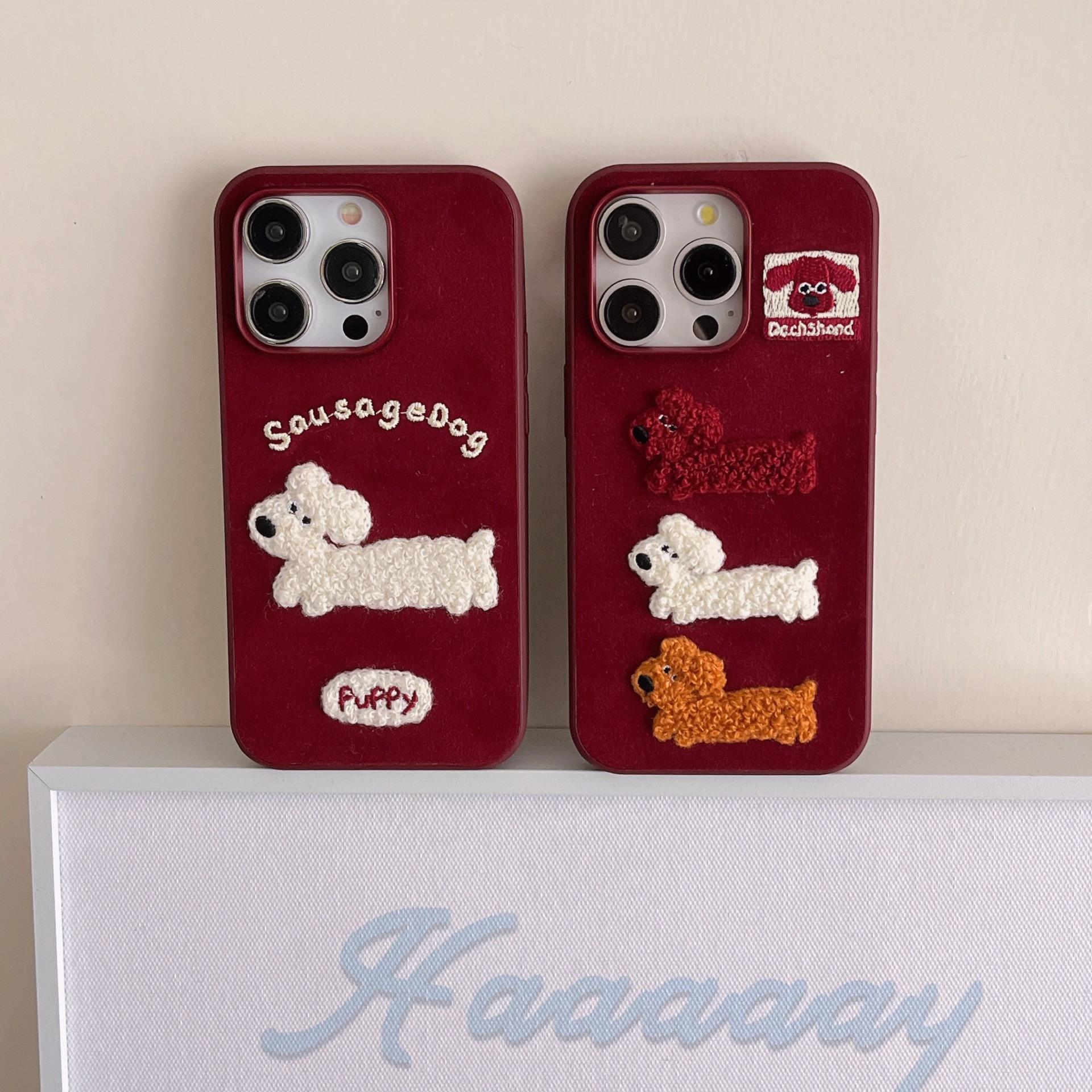 Filhote Bordado Fofo Adequado para Capa de Celular Apple 17Promax Iphone16 Vermelho Festivo 14 Portátil 15 Desenho Animado