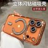Capa Magnética Brilhante com Strass para iPhone 17 Pro Max, Capa Protetora Eletrogalvanizada Anti-Queda para iPhone 16, 15, 14