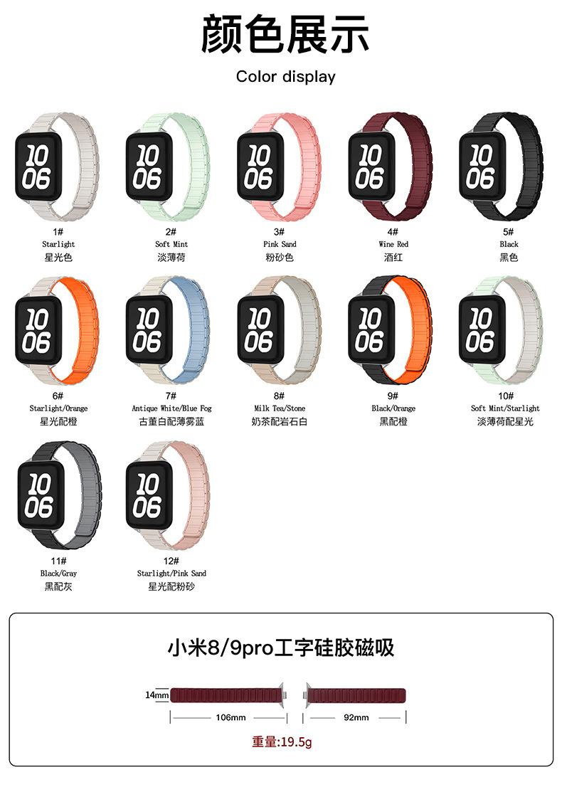 Adequado para Pulseira Xiaomi Pulseira Formato I Cintura Pequena 14mm Xiaomi 10/8/9Pro Pulseira Magnética de Silicone Bicolor