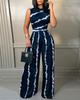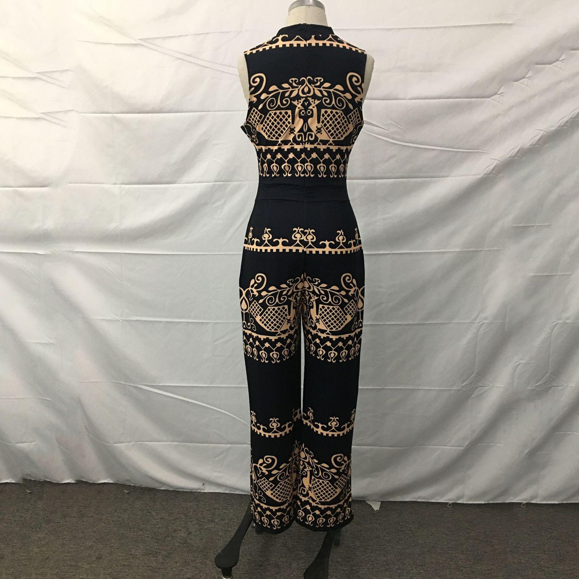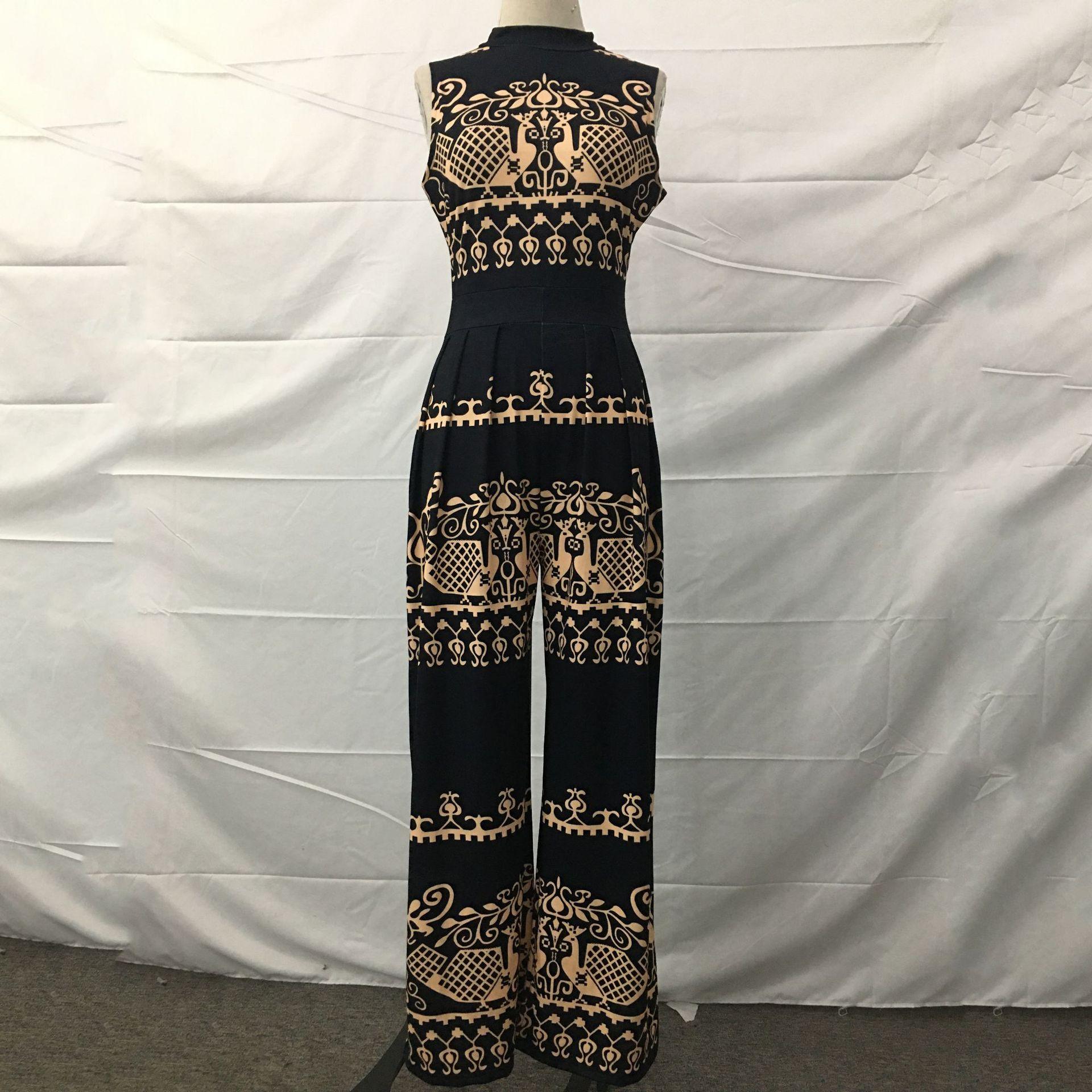 Primavera 2023 novas calças casuais quentes transfronteiriças europeias e americanas, macacão feminino slim estampado sem mangas