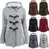 Europeu e americano 2021 Amazon Cross-border cor sólida casual botão cardigan quente comprimento médio com capuz bolso feminino casaco