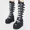 Botas de couro casuais japonesas e coreanas, botas plataforma, botas plataforma, cunha, botas acima do joelho, botas de neve X208