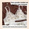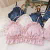 Roupa íntima sutiã push up de copa triangular francesa peito pequeno sutiã fino sem fio confortável camisola menina terno