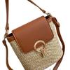 2024 Primavera e Verão Nova Bolsa de Palha Crossbody Bolsa Feminina Portátil Bolsa de Tecido Bolsa de Férias Bolsa de Rattan Tecido Moda Bolsa Pequena Bolsa de Balde