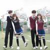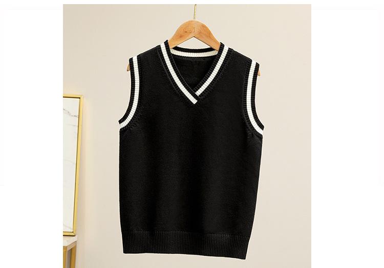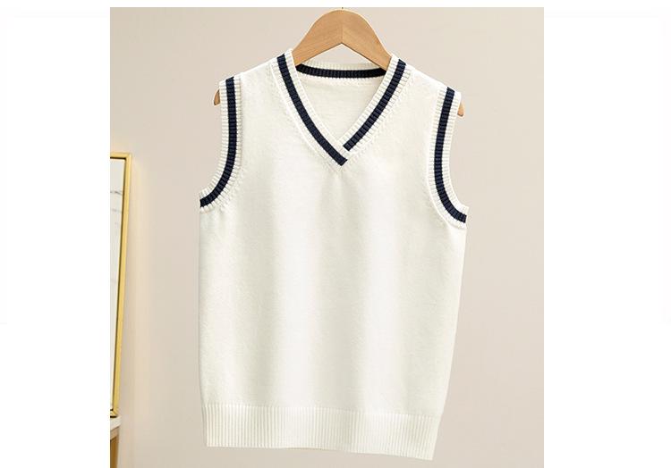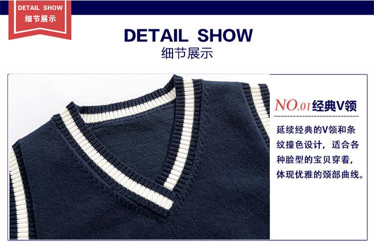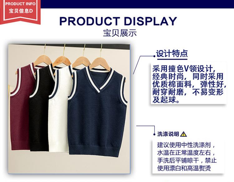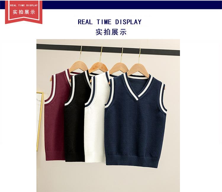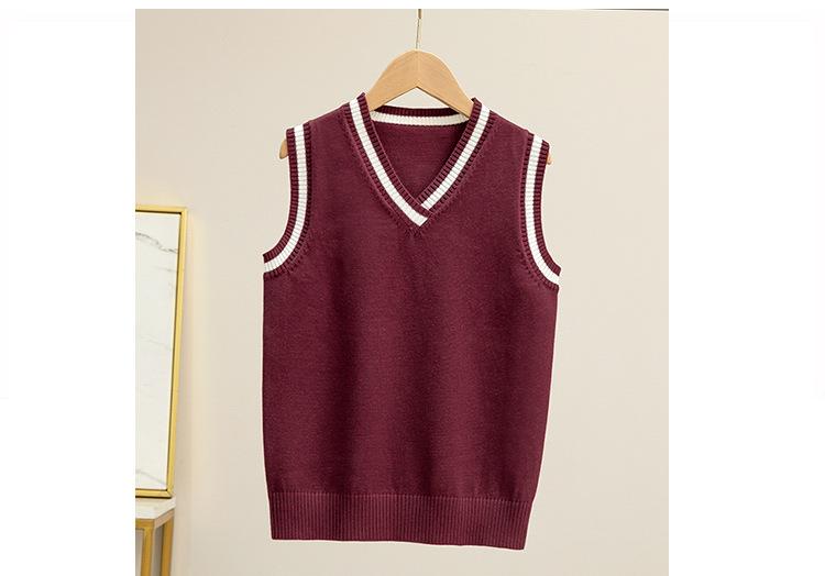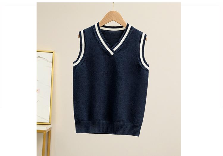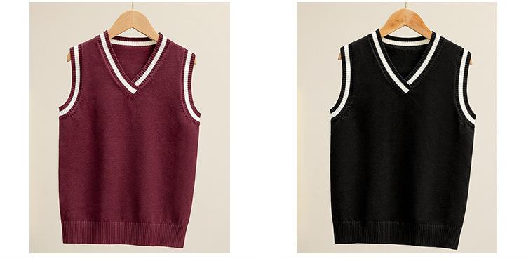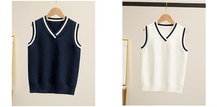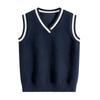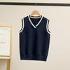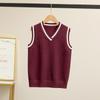 Colete de malha com decote em V, estilo universitário, de cor contrastante, para meninos, uniforme escolar feminino, uniforme de jardim de infância, atacado