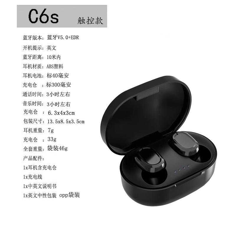 Fone de ouvido Bluetooth C6S Fone de ouvido esportivo TWS A6S Touch Mini fone de ouvido sem fio Bluetooth 5.0 Touch Touch Headset